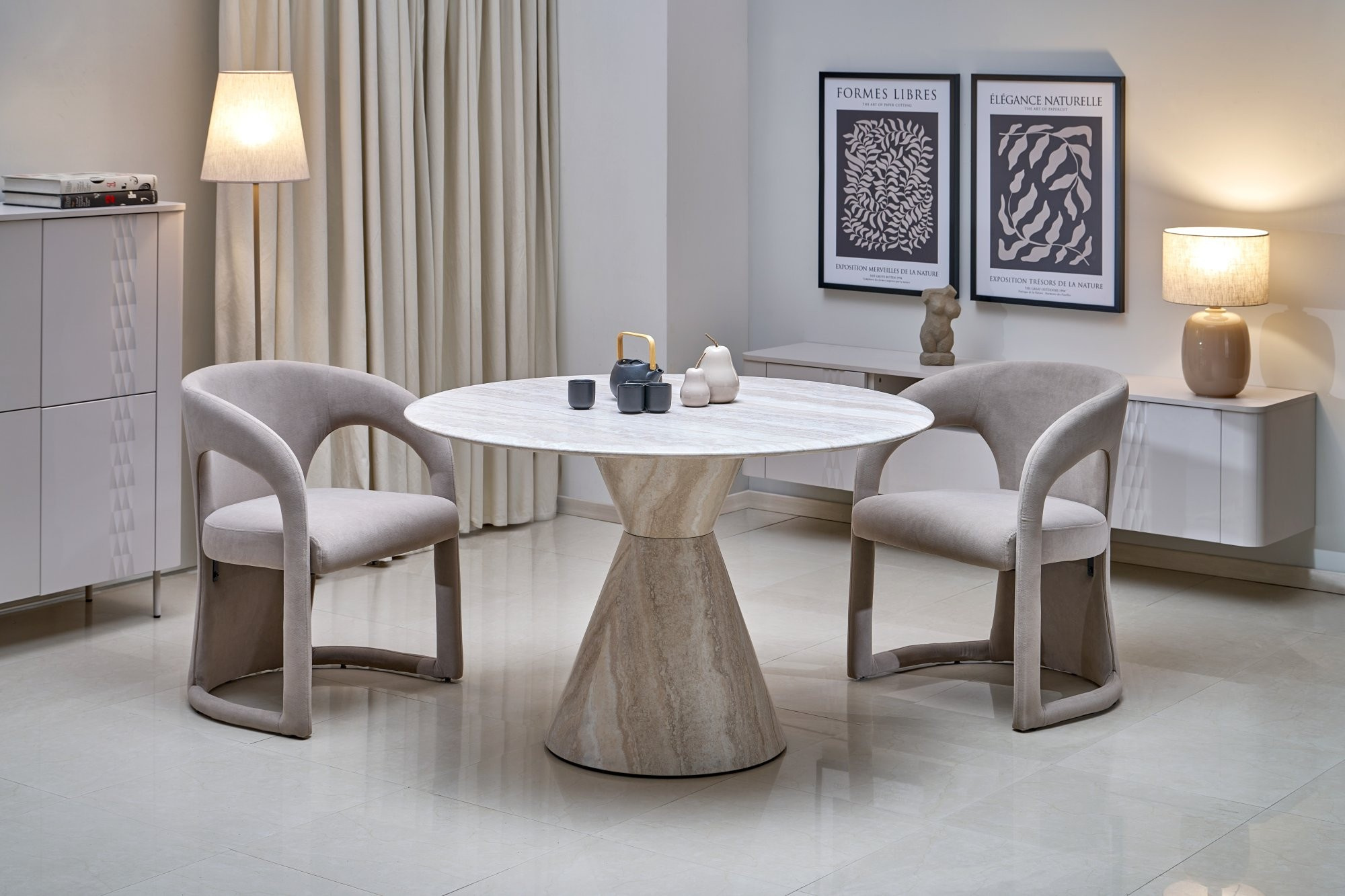 ABBOT stůl kulatý, světlý travertin
