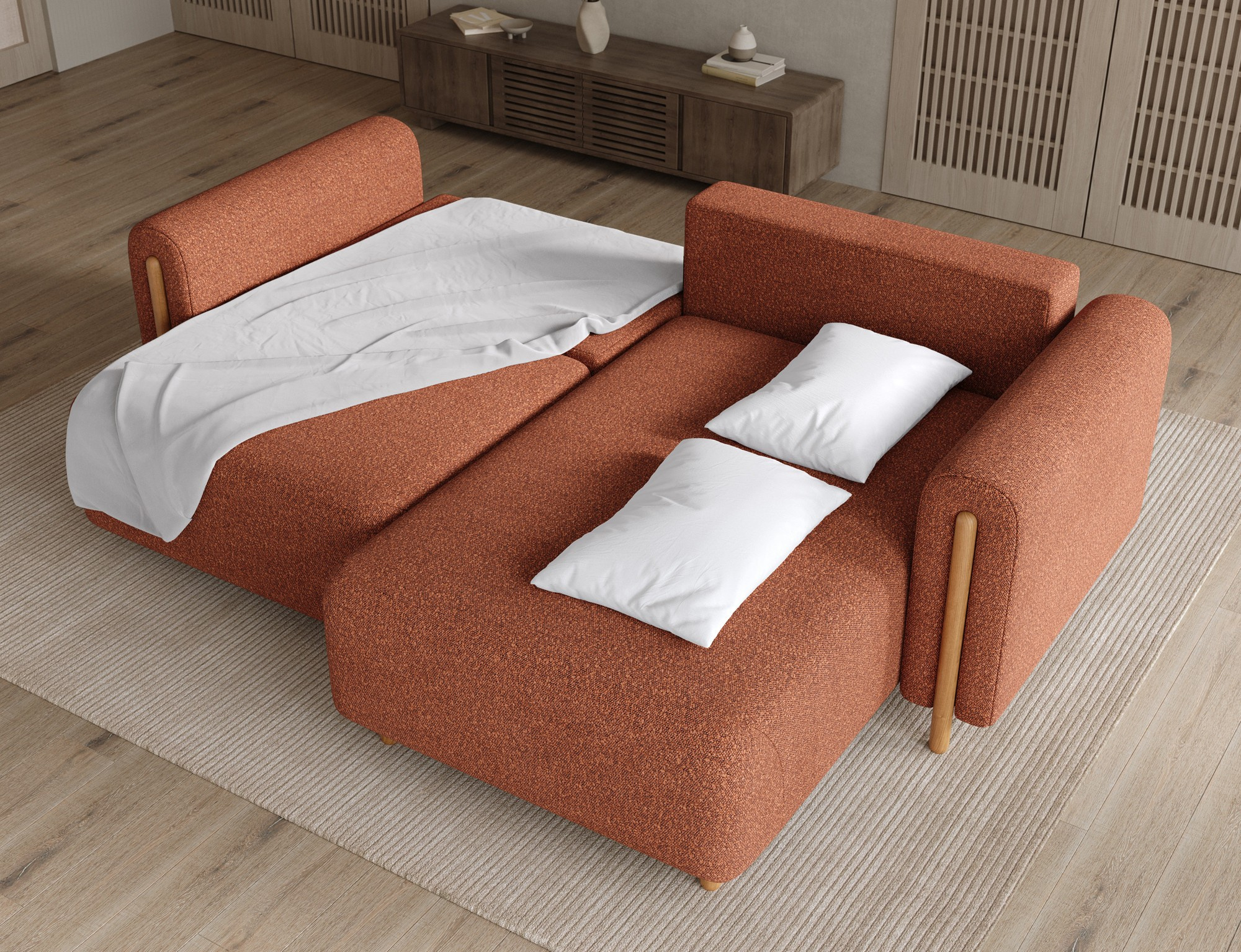 The Acossta corner sofa is a modern and functional upholstered piece designed for everyday comfort and long-lasting durability, making it perfect for both living rooms and relaxation areas. With overall dimensions of 244 × 154 × 95 cm and a weight of 121.7 kg, this model stands out for its solid construction and ergonomically shaped form that ensures a high level of seating and lounging comfort. The seat comfort is provided by a combination of Type B wave springs and HR3030 high-resilience foam, while the backrest filled with T2315 polyurethane foam offers stable and comfortable back support. The Acossta corner sofa features a sleeping function with a surface of 49 × 200 cm, making it a practical solution for occasional overnight guests, and the DL assisted unfolding mechanism with an automatic leg allows for quick and smooth conversion. An additional advantage is the integrated bedding storage compartment, which enhances functionality and provides convenient storage, making the Acossta corner sofa an ideal choice for those seeking a balance of design, comfort, and practical features.