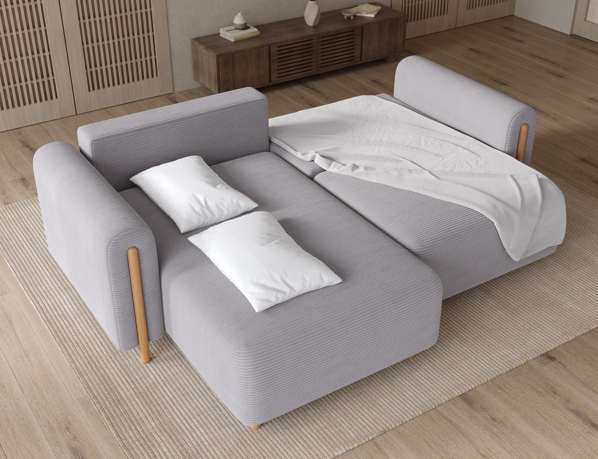 The Acossta corner sofa is a modern and functional upholstered piece designed for everyday comfort and long-lasting durability, making it perfect for both living rooms and relaxation areas. With overall dimensions of 244 × 154 × 95 cm and a weight of 121.7 kg, this model stands out for its solid construction and ergonomically shaped form that ensures a high level of seating and lounging comfort. The seat comfort is provided by a combination of Type B wave springs and HR3030 high-resilience foam, while the backrest filled with T2315 polyurethane foam offers stable and comfortable back support. The Acossta corner sofa features a sleeping function with a surface of 49 × 200 cm, making it a practical solution for occasional overnight guests, and the DL assisted unfolding mechanism with an automatic leg allows for quick and smooth conversion. An additional advantage is the integrated bedding storage compartment, which enhances functionality and provides convenient storage, making the Acossta corner sofa an ideal choice for those seeking a balance of design, comfort, and practical features.