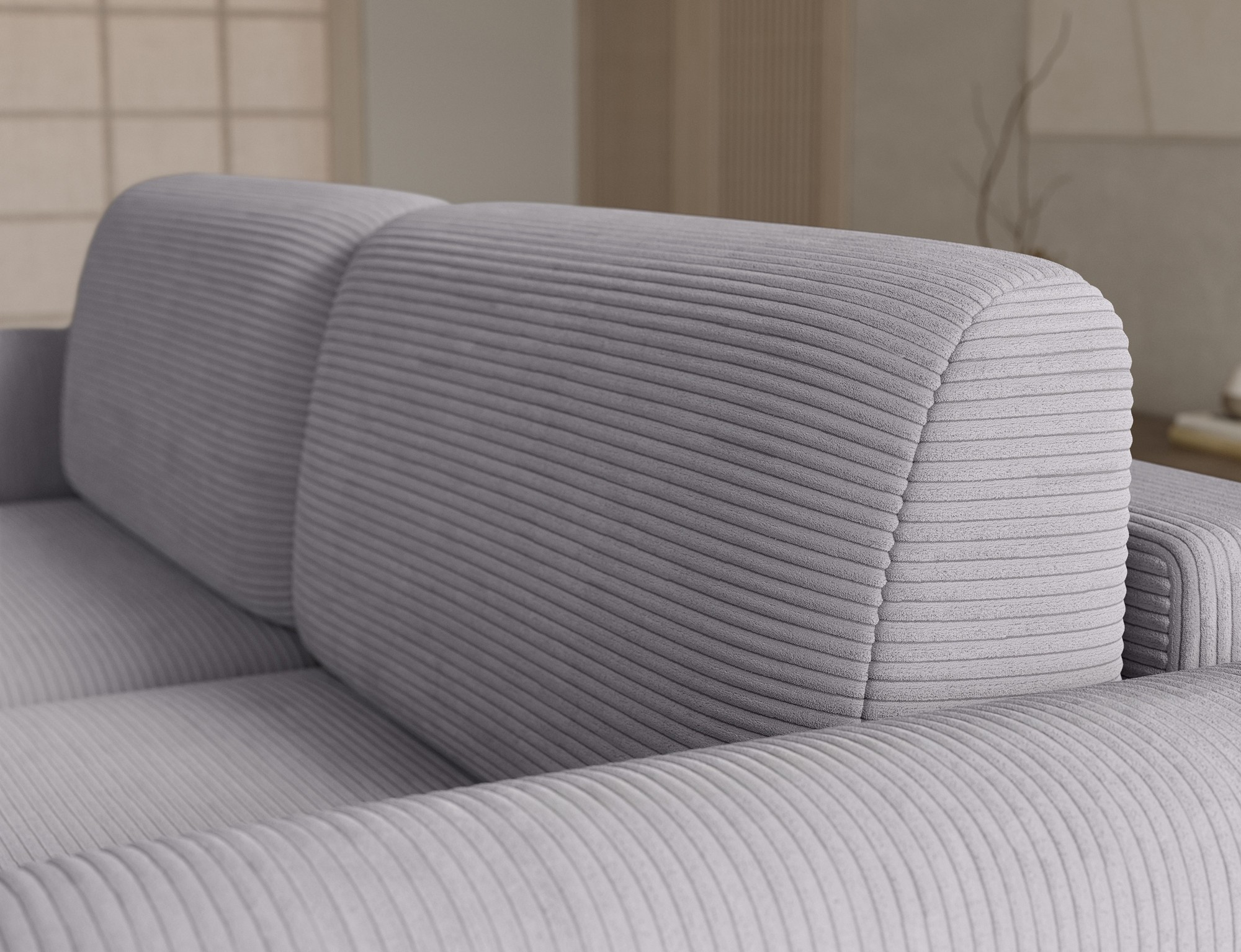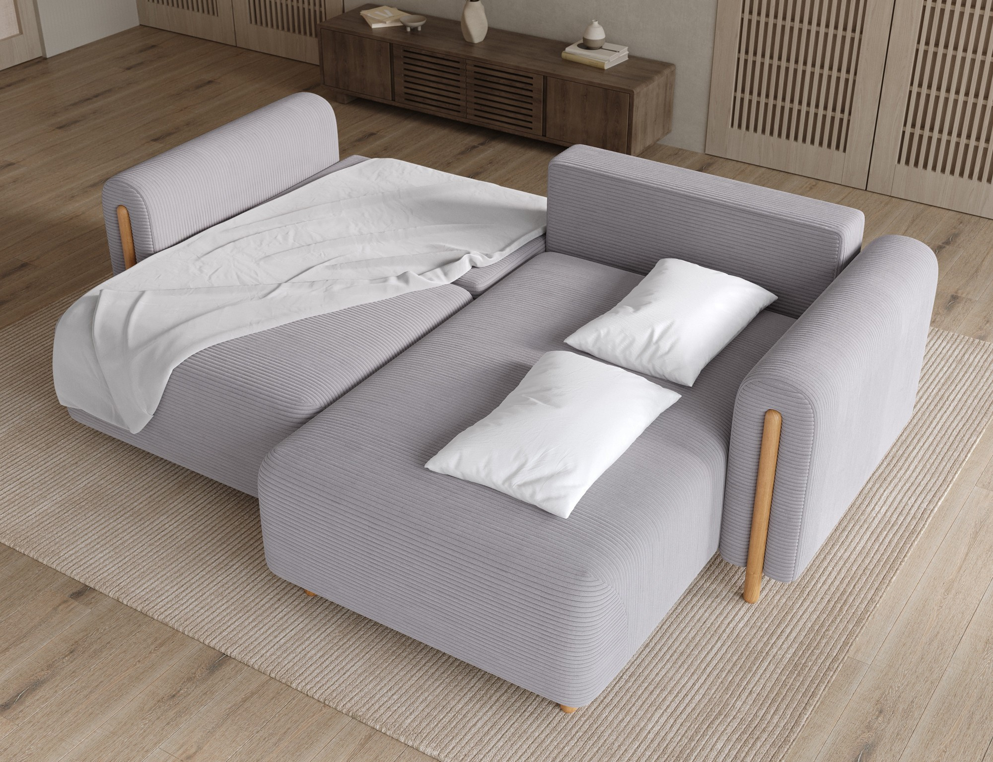 The Acossta corner sofa is a modern and functional upholstered piece designed for everyday comfort and long-lasting durability, making it perfect for both living rooms and relaxation areas. With overall dimensions of 244 × 154 × 95 cm and a weight of 121.7 kg, this model stands out for its solid construction and ergonomically shaped form that ensures a high level of seating and lounging comfort. The seat comfort is provided by a combination of Type B wave springs and HR3030 high-resilience foam, while the backrest filled with T2315 polyurethane foam offers stable and comfortable back support. The Acossta corner sofa features a sleeping function with a surface of 49 × 200 cm, making it a practical solution for occasional overnight guests, and the DL assisted unfolding mechanism with an automatic leg allows for quick and smooth conversion. An additional advantage is the integrated bedding storage compartment, which enhances functionality and provides convenient storage, making the Acossta corner sofa an ideal choice for those seeking a balance of design, comfort, and practical features.