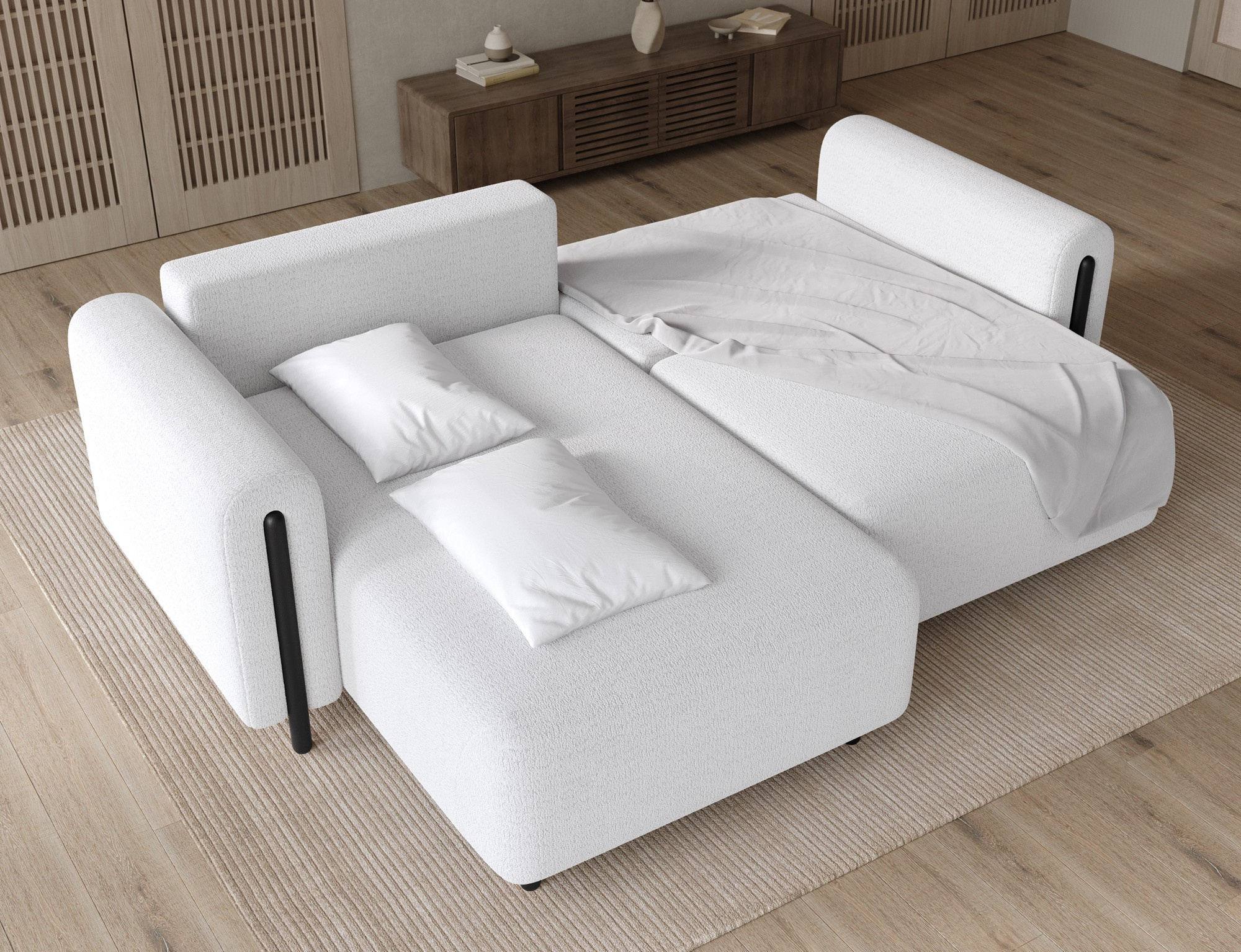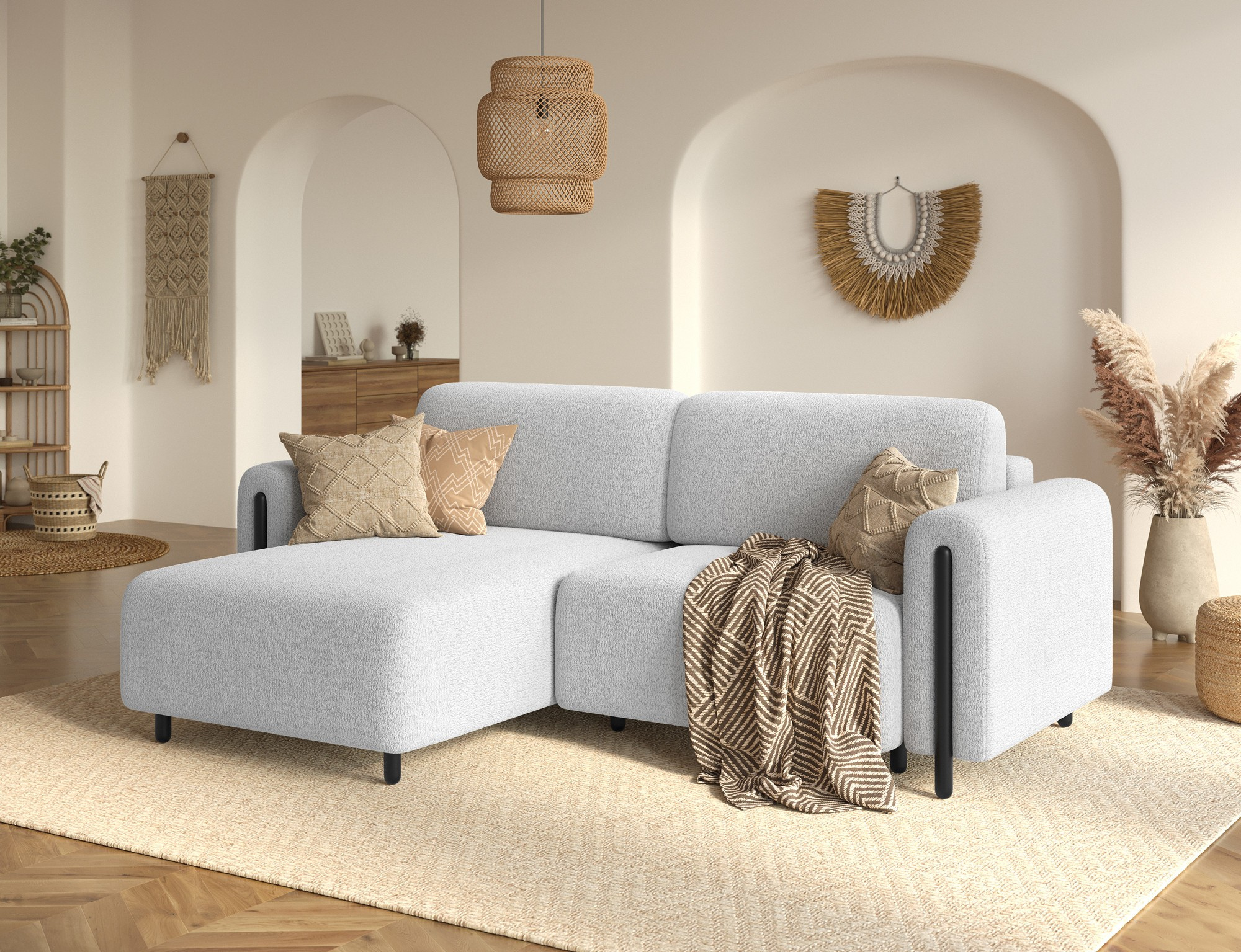 The Acossta corner sofa is a modern and functional upholstered piece designed for everyday comfort and long-lasting durability, making it perfect for both living rooms and relaxation areas. With overall dimensions of 244 × 154 × 95 cm and a weight of 121.7 kg, this model stands out for its solid construction and ergonomically shaped form that ensures a high level of seating and lounging comfort. The seat comfort is provided by a combination of Type B wave springs and HR3030 high-resilience foam, while the backrest filled with T2315 polyurethane foam offers stable and comfortable back support. The Acossta corner sofa features a sleeping function with a surface of 49 × 200 cm, making it a practical solution for occasional overnight guests, and the DL assisted unfolding mechanism with an automatic leg allows for quick and smooth conversion. An additional advantage is the integrated bedding storage compartment, which enhances functionality and provides convenient storage, making the Acossta corner sofa an ideal choice for those seeking a balance of design, comfort, and practical features.