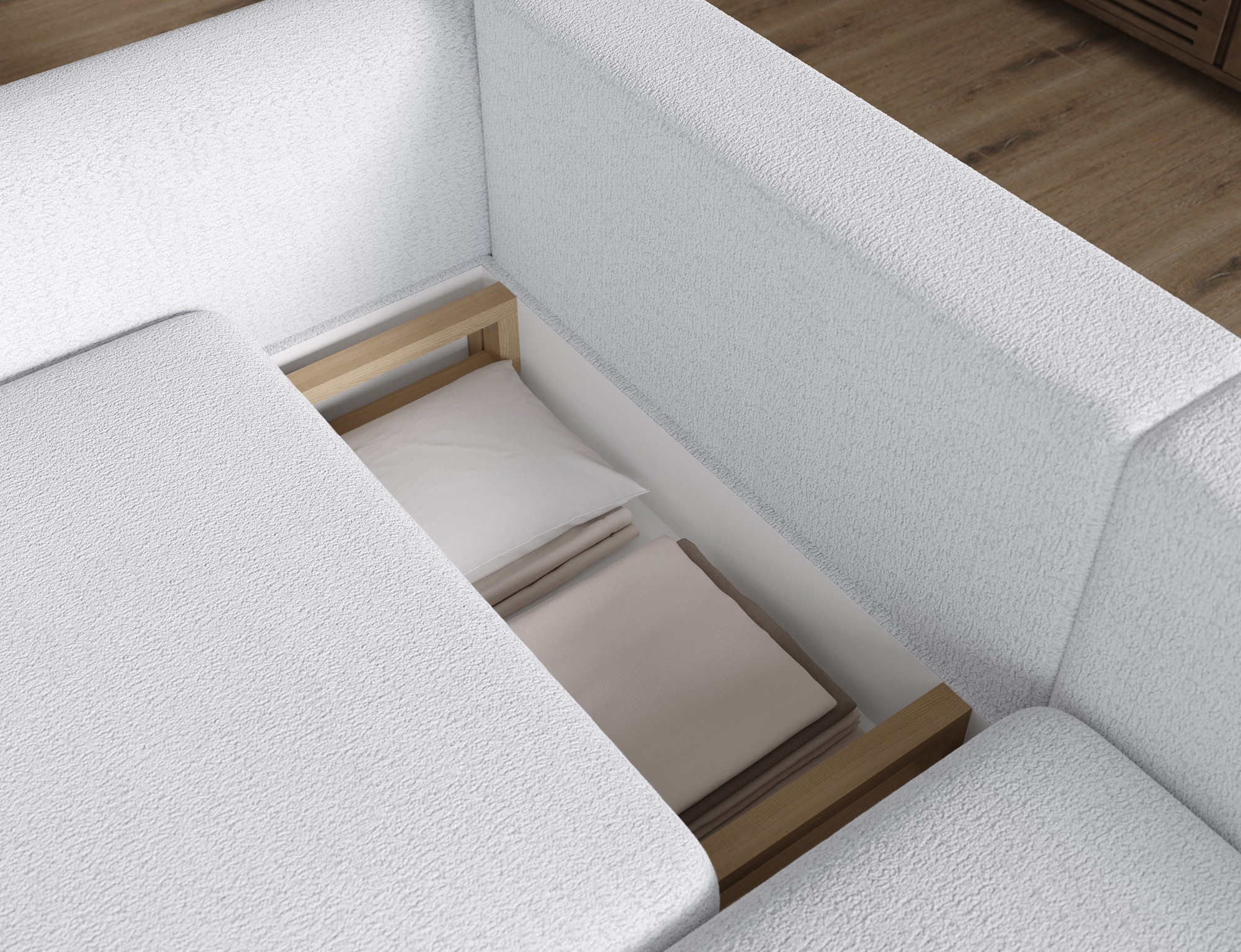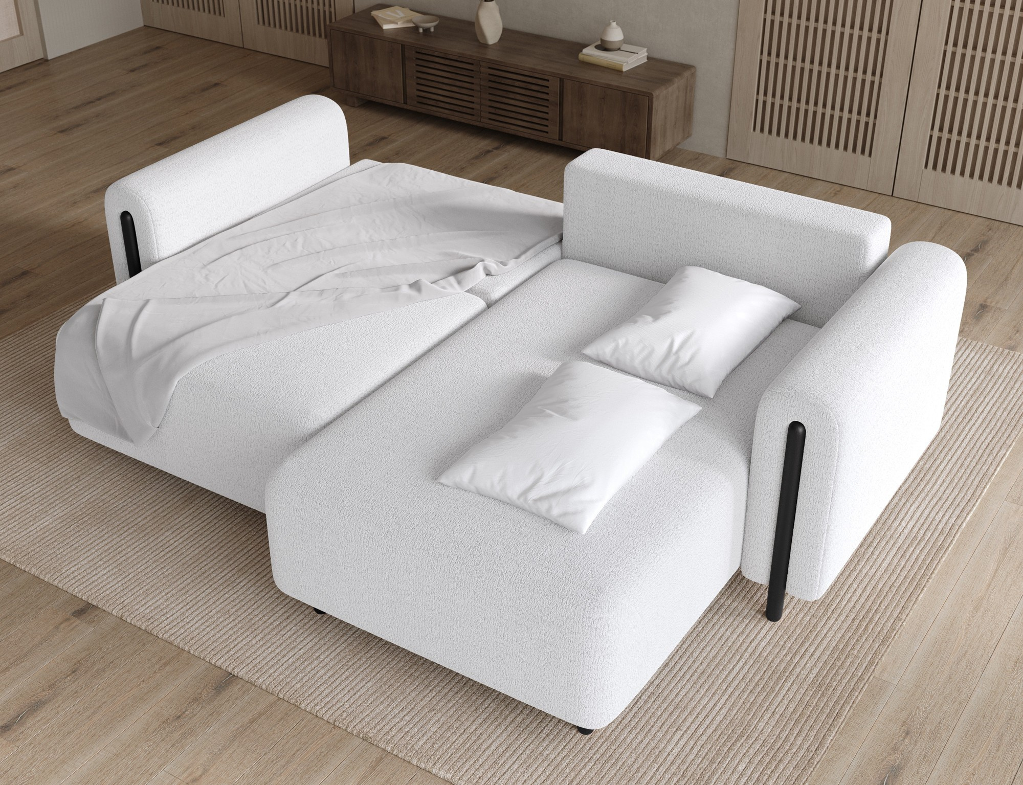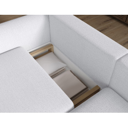 The Acossta corner sofa is a modern and functional upholstered piece designed for everyday comfort and long-lasting durability, making it perfect for both living rooms and relaxation areas. With overall dimensions of 244 × 154 × 95 cm and a weight of 121.7 kg, this model stands out for its solid construction and ergonomically shaped form that ensures a high level of seating and lounging comfort. The seat comfort is provided by a combination of Type B wave springs and HR3030 high-resilience foam, while the backrest filled with T2315 polyurethane foam offers stable and comfortable back support. The Acossta corner sofa features a sleeping function with a surface of 49 × 200 cm, making it a practical solution for occasional overnight guests, and the DL assisted unfolding mechanism with an automatic leg allows for quick and smooth conversion. An additional advantage is the integrated bedding storage compartment, which enhances functionality and provides convenient storage, making the Acossta corner sofa an ideal choice for those seeking a balance of design, comfort, and practical features.