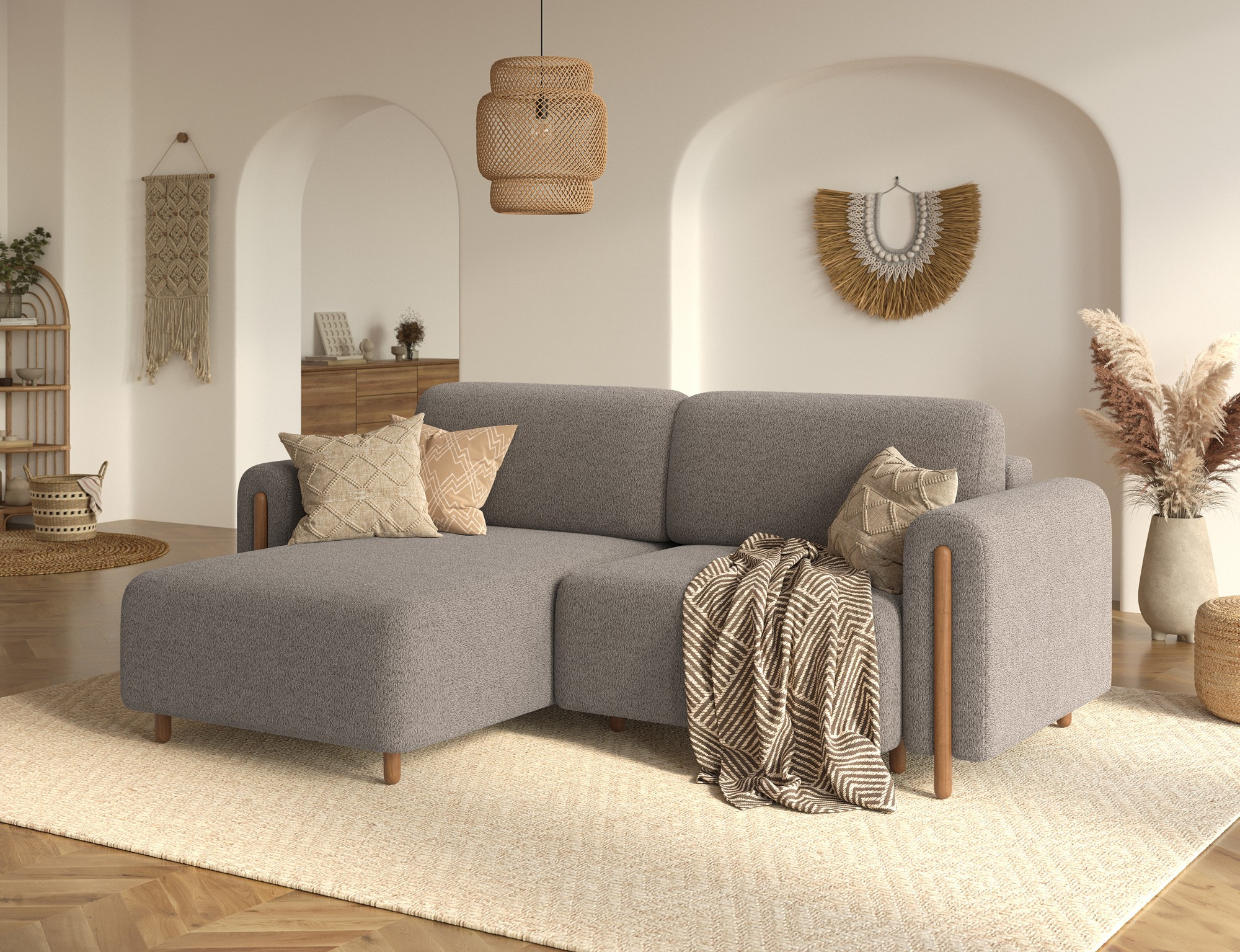 The Acossta corner sofa is a modern and functional upholstered piece designed for everyday comfort and long-lasting durability, making it perfect for both living rooms and relaxation areas. With overall dimensions of 244 × 154 × 95 cm and a weight of 121.7 kg, this model stands out for its solid construction and ergonomically shaped form that ensures a high level of seating and lounging comfort. The seat comfort is provided by a combination of Type B wave springs and HR3030 high-resilience foam, while the backrest filled with T2315 polyurethane foam offers stable and comfortable back support. The Acossta corner sofa features a sleeping function with a surface of 49 × 200 cm, making it a practical solution for occasional overnight guests, and the DL assisted unfolding mechanism with an automatic leg allows for quick and smooth conversion. An additional advantage is the integrated bedding storage compartment, which enhances functionality and provides convenient storage, making the Acossta corner sofa an ideal choice for those seeking a balance of design, comfort, and practical features.
