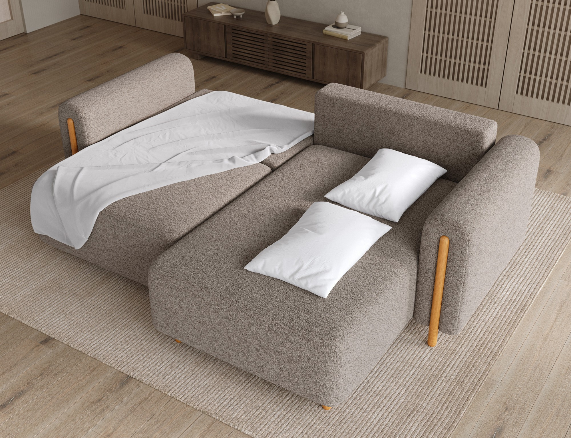 The Acossta corner sofa is a modern and functional upholstered piece designed for everyday comfort and long-lasting durability, making it perfect for both living rooms and relaxation areas. With overall dimensions of 244 × 154 × 95 cm and a weight of 121.7 kg, this model stands out for its solid construction and ergonomically shaped form that ensures a high level of seating and lounging comfort. The seat comfort is provided by a combination of Type B wave springs and HR3030 high-resilience foam, while the backrest filled with T2315 polyurethane foam offers stable and comfortable back support. The Acossta corner sofa features a sleeping function with a surface of 49 × 200 cm, making it a practical solution for occasional overnight guests, and the DL assisted unfolding mechanism with an automatic leg allows for quick and smooth conversion. An additional advantage is the integrated bedding storage compartment, which enhances functionality and provides convenient storage, making the Acossta corner sofa an ideal choice for those seeking a balance of design, comfort, and practical features.