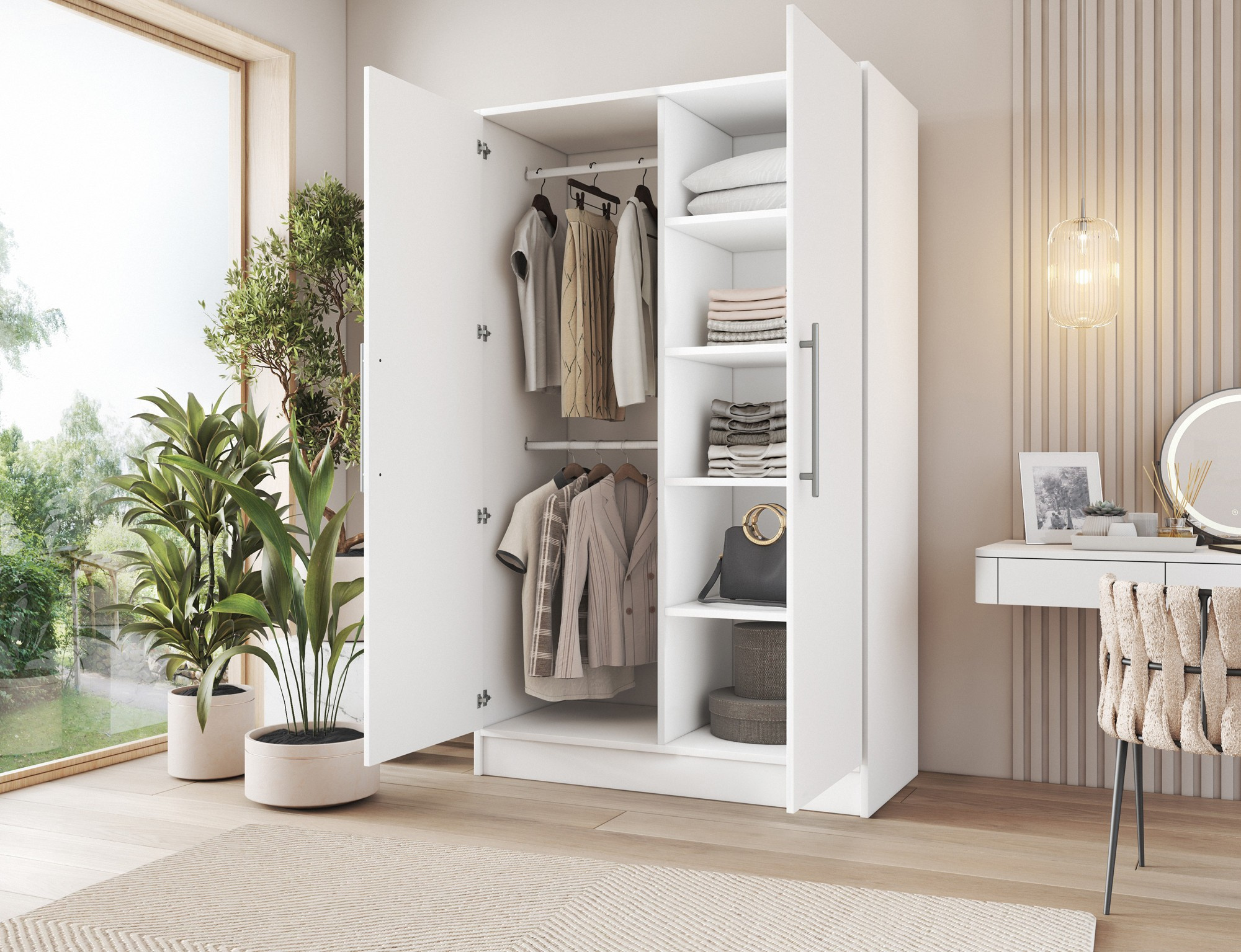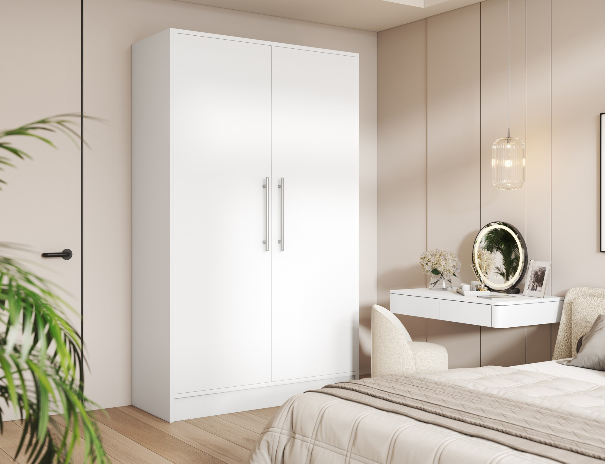 Šatní skříň Alarica je prostorná a robustní skříň na oblečení navržená pro pohodlné uložení oblečení a doplňků v domácnostech různých velikostí. S rozměry 120 cm na šířku, 200 cm na výšku a 60 cm do hloubky nabízí velkorysý využitelný prostor, přičemž si zachovává proporce, které umožňují snadné umístění ve většině interiérových uspořádání. Tělo i přední část jsou vyrobeny z odolné laminované desky, což zajišťuje odolnost vůči každodennímu používání, snadné čištění a atraktivní vzhled po mnoho let. Uvnitř skříně se nacházejí 4 praktické police o rozměrech 57 × 37 × 51 cm, každá s maximální nosností až 8 kg—ideální pro složené oblečení, domácí textilie nebo organizéry—zatímco 2 závěsné tyče doplňují sestavu, což vám umožní pohodlně pověsit košile, šaty, kabáty a další oděvy bez pomačkání. Další výhodou je zrcadlo na přední straně, které opticky zvětšuje místnost a usnadňuje každodenní přípravy. Šatní skříň Alarica váží 120 kg, což zdůrazňuje stabilitu její konstrukce, a je dodávána ve 3 baleních (66 × 206 × 7 cm – 45 kg, 66 × 125 × 7 cm – 45 kg, 62 × 190 × 4 cm – 28 kg), což usnadňuje přepravu a přenášení dovnitř—vynikající volba pro každého, kdo hledá funkční, moderní a odolnou šatní skříň s policemi, závěsnými tyčemi a zrcadlem pro úhledně organizované ukládání oblečení.