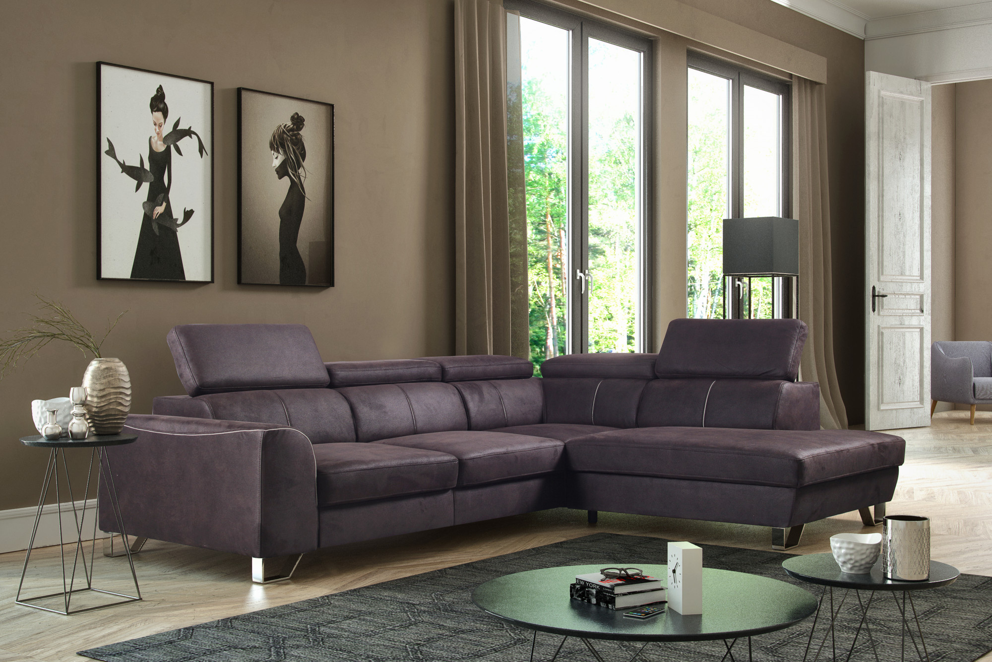 Rohová sedací souprava AMADEUS (ASTI) OSP-R-3FBL-Pravá-látka Montana 811/paspulka 203 (STA) kolekce - "STA" (K250-Z)