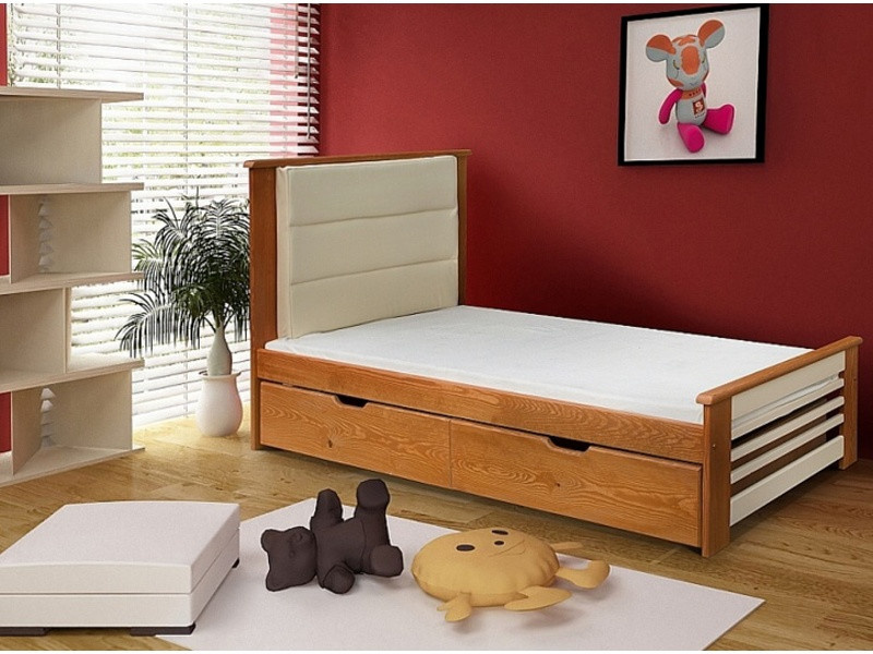 AMELIA je dětská postel z lakovaného borovicového dřeva. V ceně postele jsou také 2 úložné šuplíky. Maximální nosnost horní postele je 80 kg.