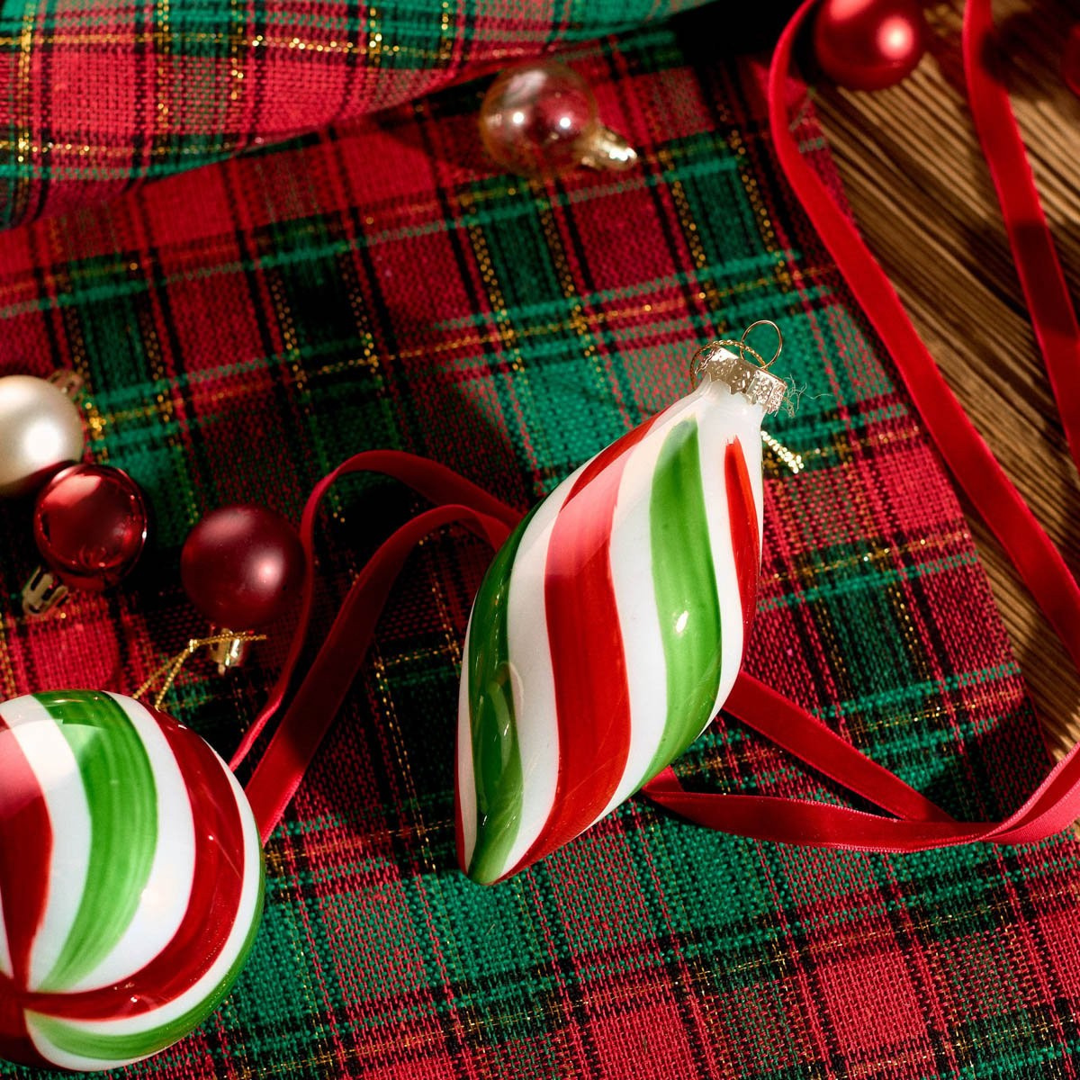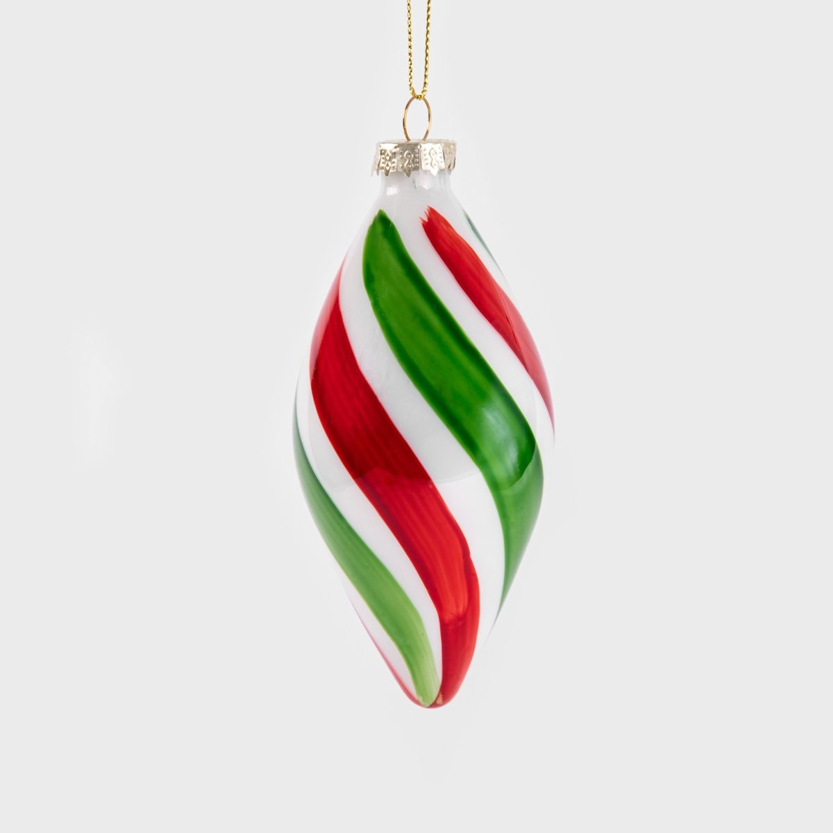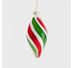 AMERE plná skleněná baňka se zelenými a červenými pruhy rampouch 6x13 cm 715143