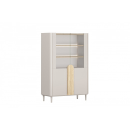 AMILIO VITRÍNA 100 2D - kašmír / olejovaný dub / úchyty světlý dub / nohy kašmír