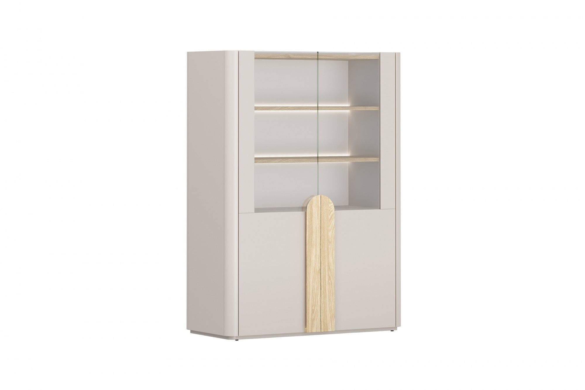AMILIO VITRÍNA 100 2D - kašmír / olejovaný dub / úchyty světlý dub