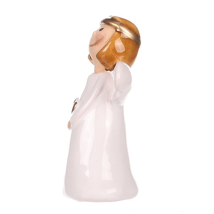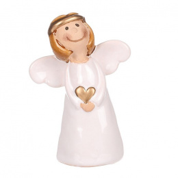 Podlehněte jemnosti a kráse této dekorační keramické sošky andělíčka v bílých šatech a se zlatým srdíčkem v rukou. Přidejte tím dotek s kombinací duchovnosti a elegance do vašeho prostoru a nechte jej vynikat na poličce, komodě nebo na jiném vhodném místě, kterému chcete dodat zvláštní význam. Anděl symbolizuje lásku a emocionální naplnění a jeho přítomnost vytváří atmosféru ochrany a péče, jenž nám připomíná důležitost porozumění a soucitu v našem životě. Ať už hledáte duchovní poselství, pocit klidu nebo prostě krásnou dekoraci, přidejte do svého prostoru tento výrazný symbol lásky a nechte se obklopit jeho magickým vlivem.