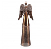Kovový anděl ve svátečním měděném odstínu bude impozantní dekorací pro váš domov. Drží v rukou srdce jako symbol lásky a pohody, což z něj činí ideální ozdobu pro vánoční období. Má krásně tvarovaná křídla, kulatou hlavičku a spodní část šatů je průhledná, což umocňuje jeho eleganci. Díky výšce přibližně 105 cm upoutá pozornost a stane se úžasnou dominantou v každém interiéru, ať už bude umístěná na stole, komodě, okně nebo na podlaze.