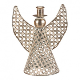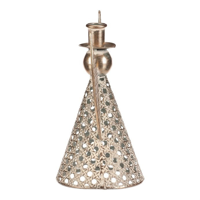 Anděl kovový - 22 cm, na kónickou svíčku, champagne