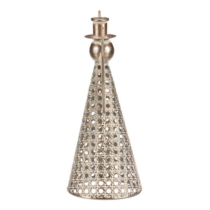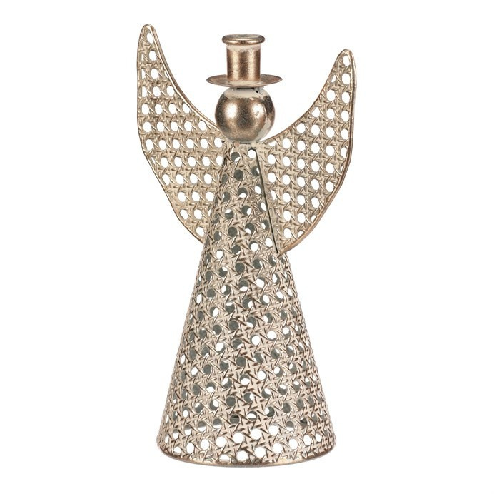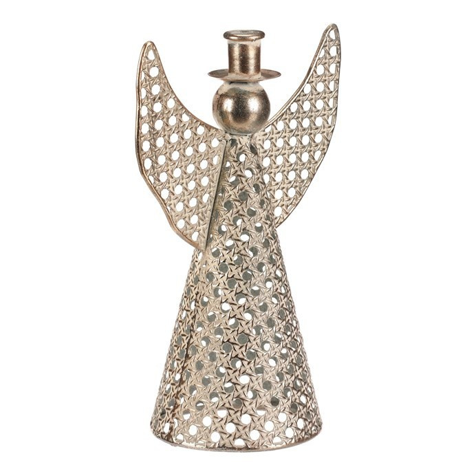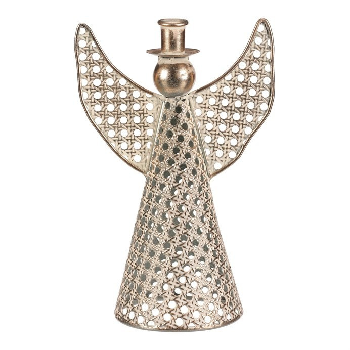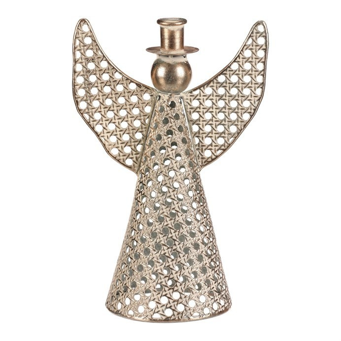 Anděl kovový - 28 cm, na kónickou svíčku, champagne
