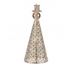 Kovový anděl vysoký přibližně 28 cm je elegantní vánoční dekorace v champagne odstínu. Na jeho kulaté hlavičce se nachází kalíšek přizpůsobený pro umístění kónické svíčky. Nabízí tak neodolatelnou kombinaci vkusné dekorace s možností vytvořit nádherný světelný efekt. Díky jemným kruhovým otvorům působí vzdušně a vkusně ozdobí váš interiér během svátečního období.