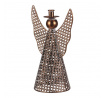 Anděl kovový - 35 cm, na kónickou svíčku, měděný