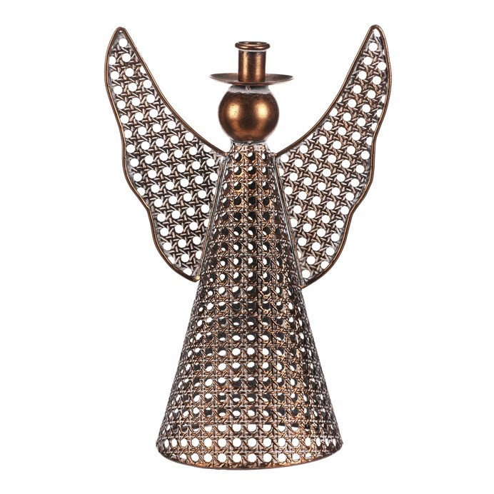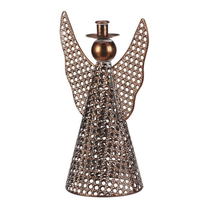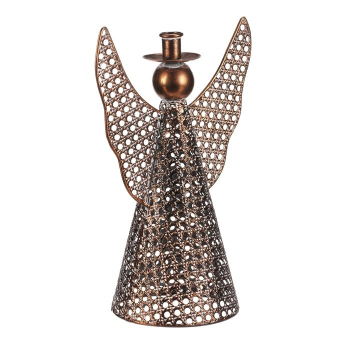 Anděl kovový - 35 cm, na kónickou svíčku, měděný