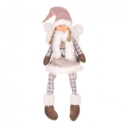 Anděl - látková figurka, visící nohy, růžová čepice