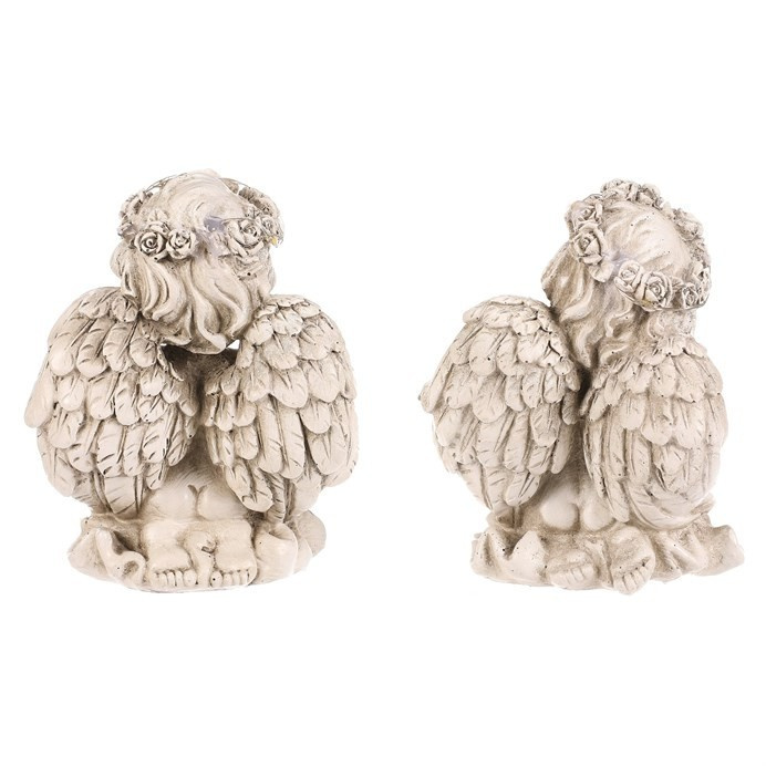 Pietní andílek z polyresinu v jemném světle šedém tónu vyzařuje klid a něhu. Sedící postavička s jemnými detaily působí jako ochránce vzpomínek a symbol míru. Uvnitř má zabudované LED osvětlení, které po rozsvícení dodává dekoraci hřejivý nádech a vytváří poklidnou atmosféru. Nabízíme jej v mixu 2 variant, přičemž cena je uvedena za 1 kus.