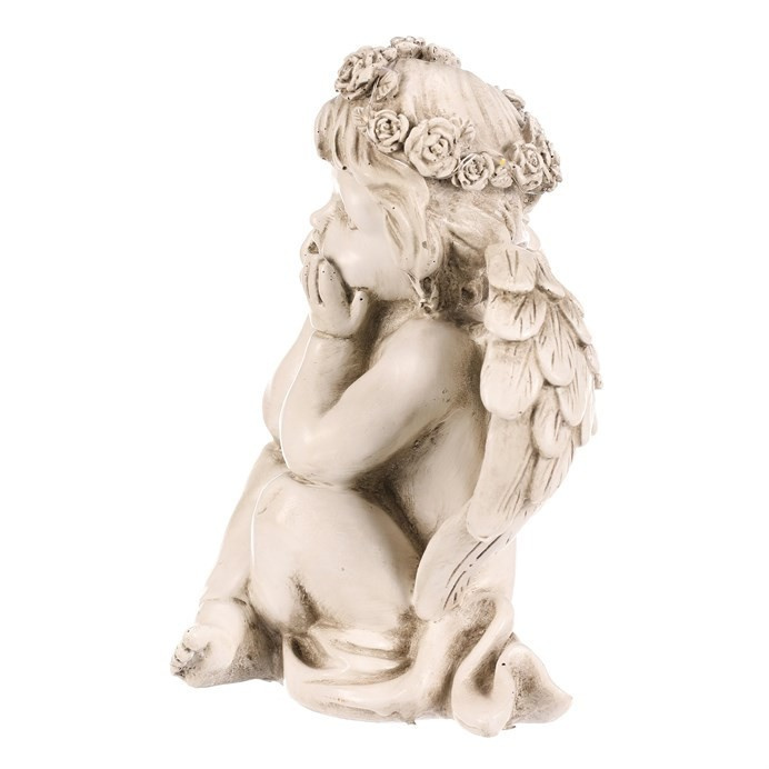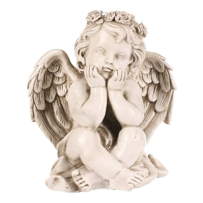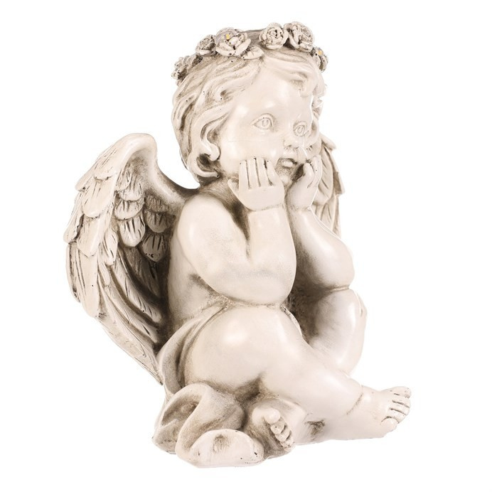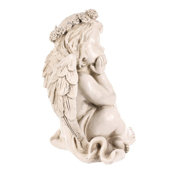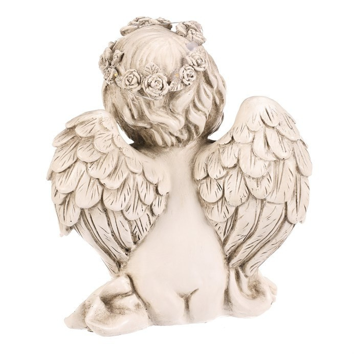 Pietní andílek z polyresinu v jemném světle šedém tónu vyzařuje klid a něhu. Sedící postavička s jemnými detaily působí jako ochránce vzpomínek a symbol míru. Uvnitř má zabudované LED osvětlení, které po rozsvícení dodává dekoraci hřejivý nádech a vytváří poklidnou atmosféru.
