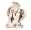 Anděl pietní - polyresin, LED, sedící, sv. šedý
