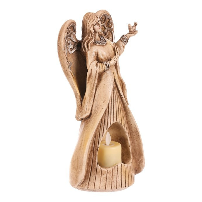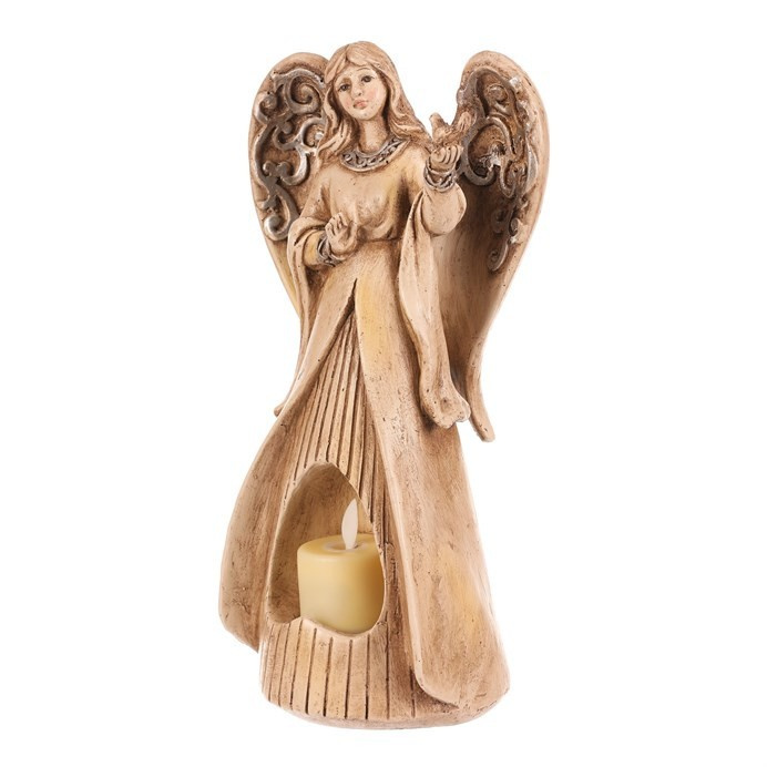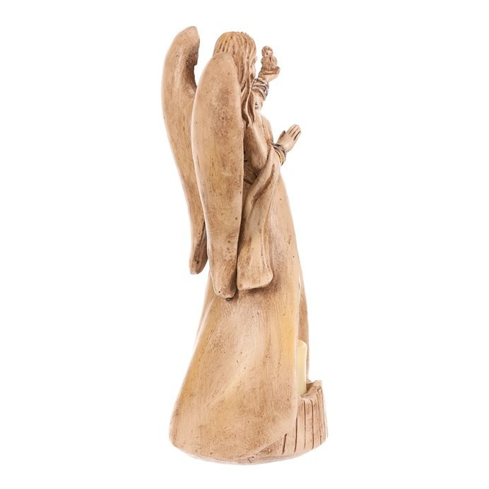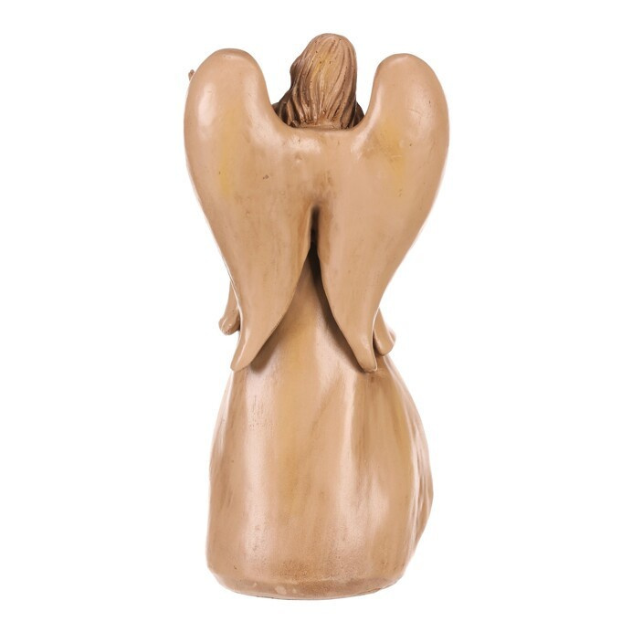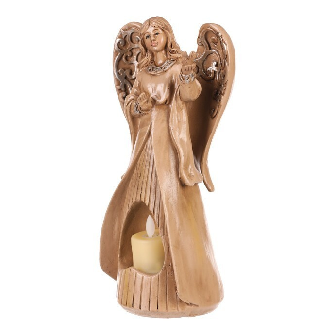 Anděl pietní - polyresin, LED svíčka, béžovo-hnědý