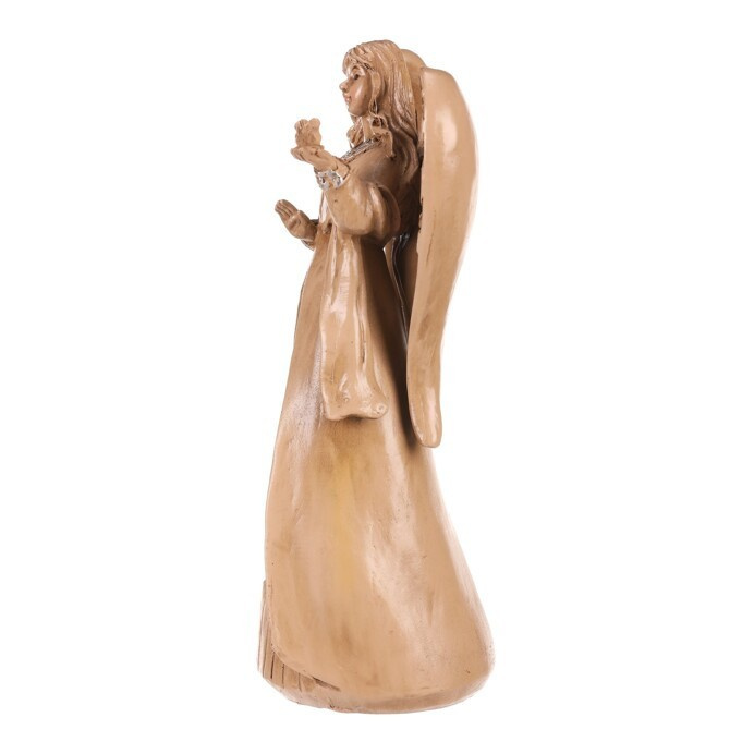 Tato pietní figurka anděla z polyresinu v jemných béžovo-hnědých tónech působí jako strážce lásky a naděje. Anděl symbolizuje ochranu, lásku a úctu. Díky integrované LED svíčce, která po rozsvícení vytváří hřejivé, uklidňující světlo, se tato soška stává nejen důstojnou dekorací, ale i posvátným symbolem vzpomínek a klidu.