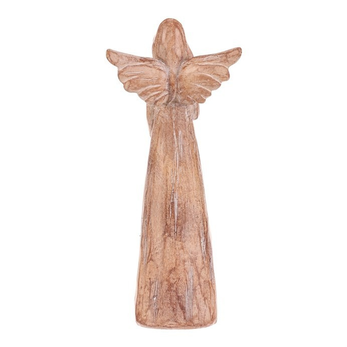 Tato soška anděla se srdcem o výšce 24 cm vypadá, jako by byla vytesána z dřevěného špalku, a přináší do vašeho domova symbol ochrany a lásky. Věrná imitace dřeva v hnědé barvě s dokonalou texturou dodává sošce přírodní a elegantní vzhled. Ideální dekorace pro postavení na poličku nebo stolek, která vytvoří klidnou a harmonickou atmosféru.