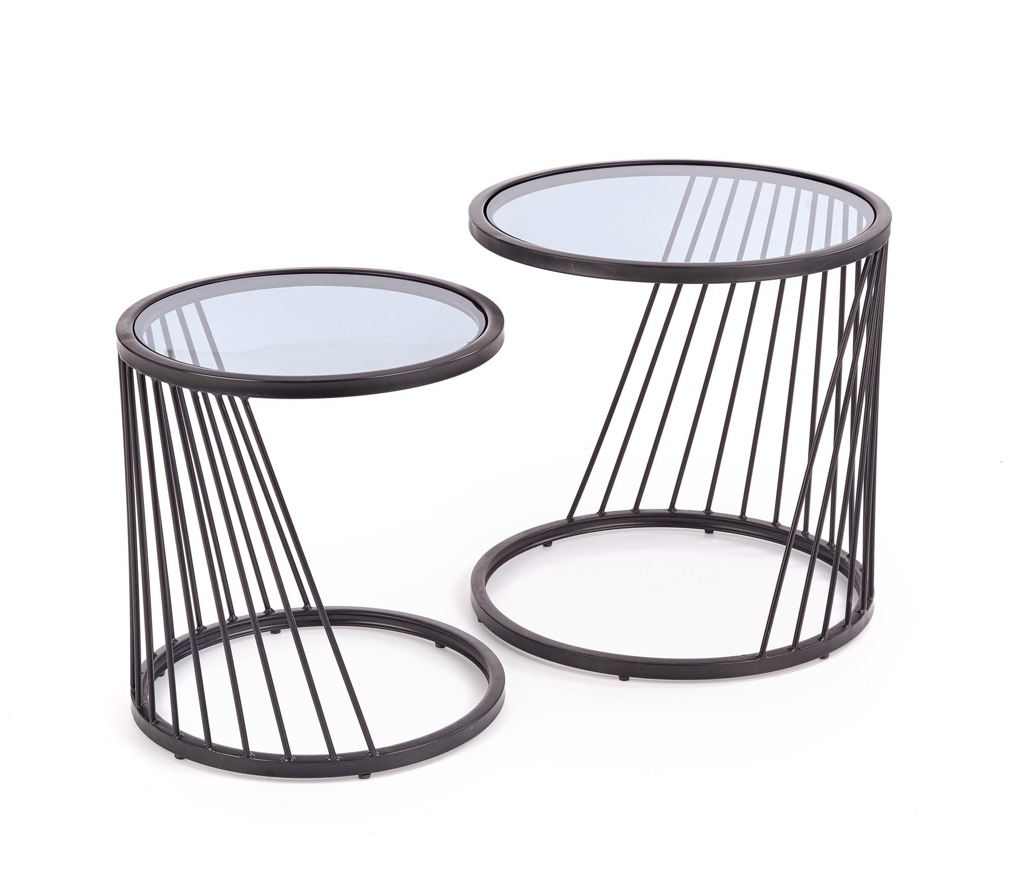 rozměry: 50/50 cm a 42/45 cm, materiál: sklo / práškově lakovaná ocel, barva: kouřová - černá