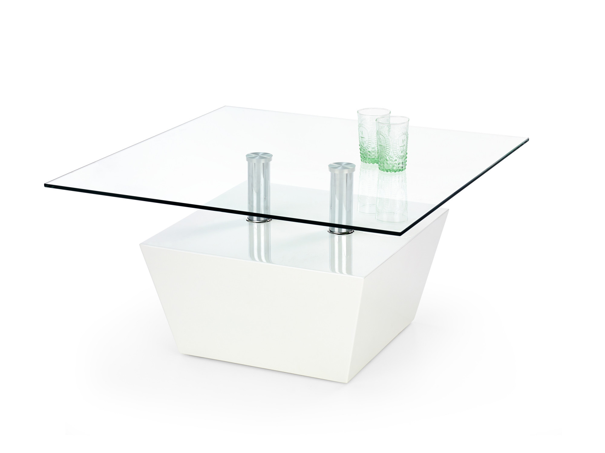 rozměry: 80/80/42 cm, materiál: sklo / lakovaná MDF, barva: bílá