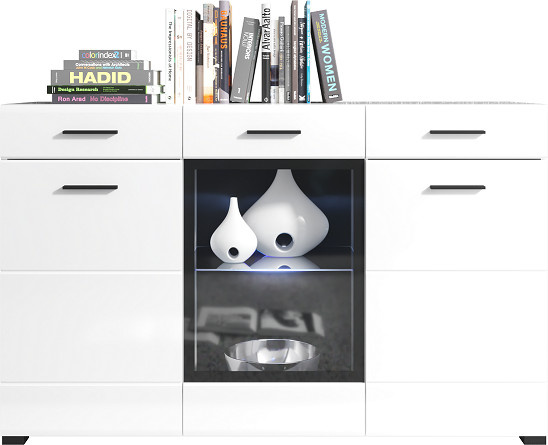 ARKTIC-komoda kom 1W2D2S, lamino Bílá/bílý lesk vetně LED osvětlení(Vusher kom 1w2d2s...balíků)(UB)K150