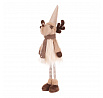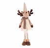 Látkový sob v béžovo-hnědém teplém oblečení vnese do vašeho domova veselou a hřejivou atmosféru. Jeho roztomilý obličej, špičatá čepice s bambulí a celkově veselý vzhled zútulní každý interiér. Tato látková figurka, hebká na dotek, se skvěle hodí jako dekorace na poličku, stůl nebo ji můžete umístit i na pohovku nebo gauč, kde bude vaším hravým společníkem.