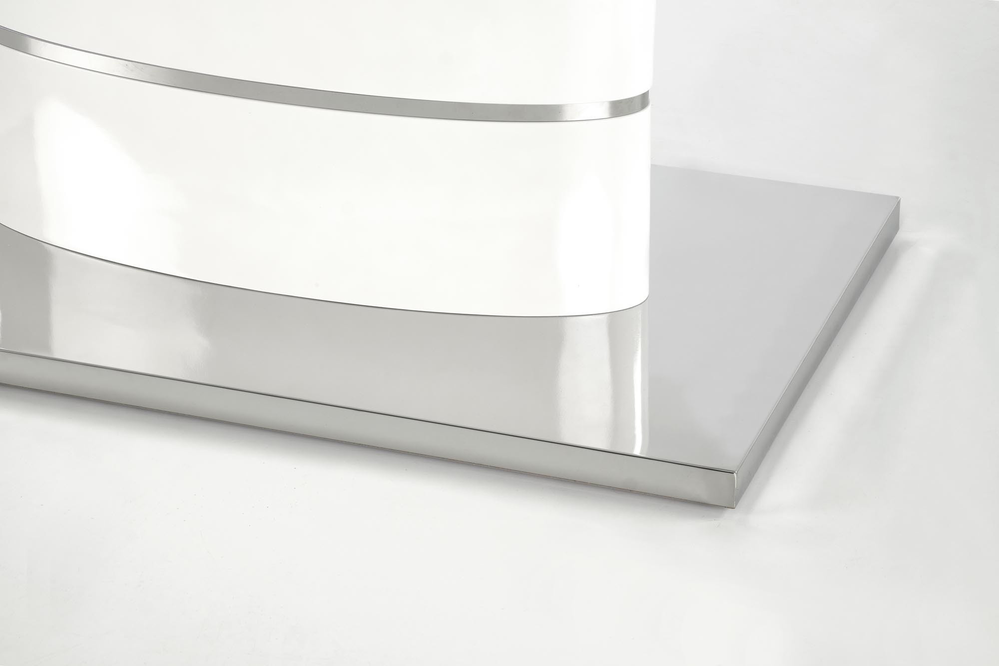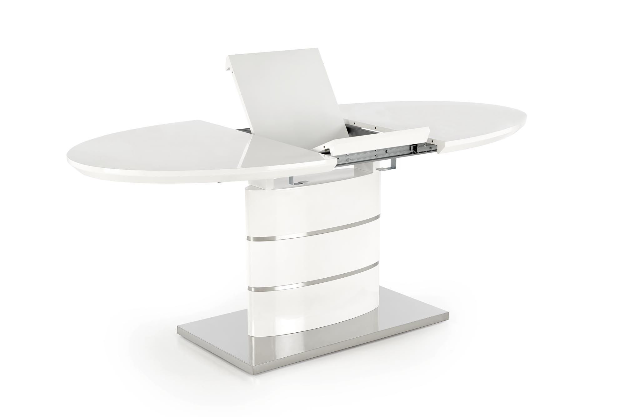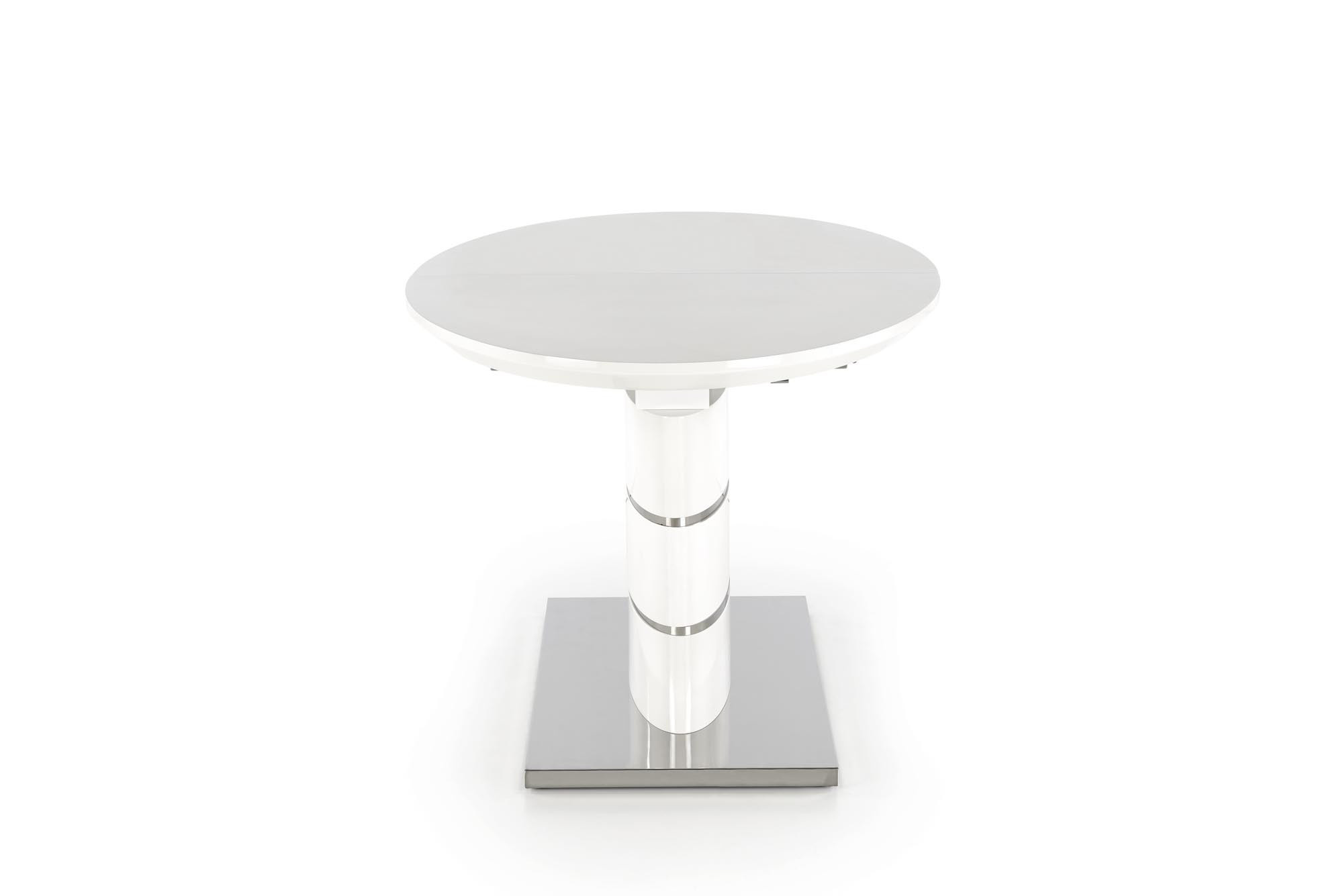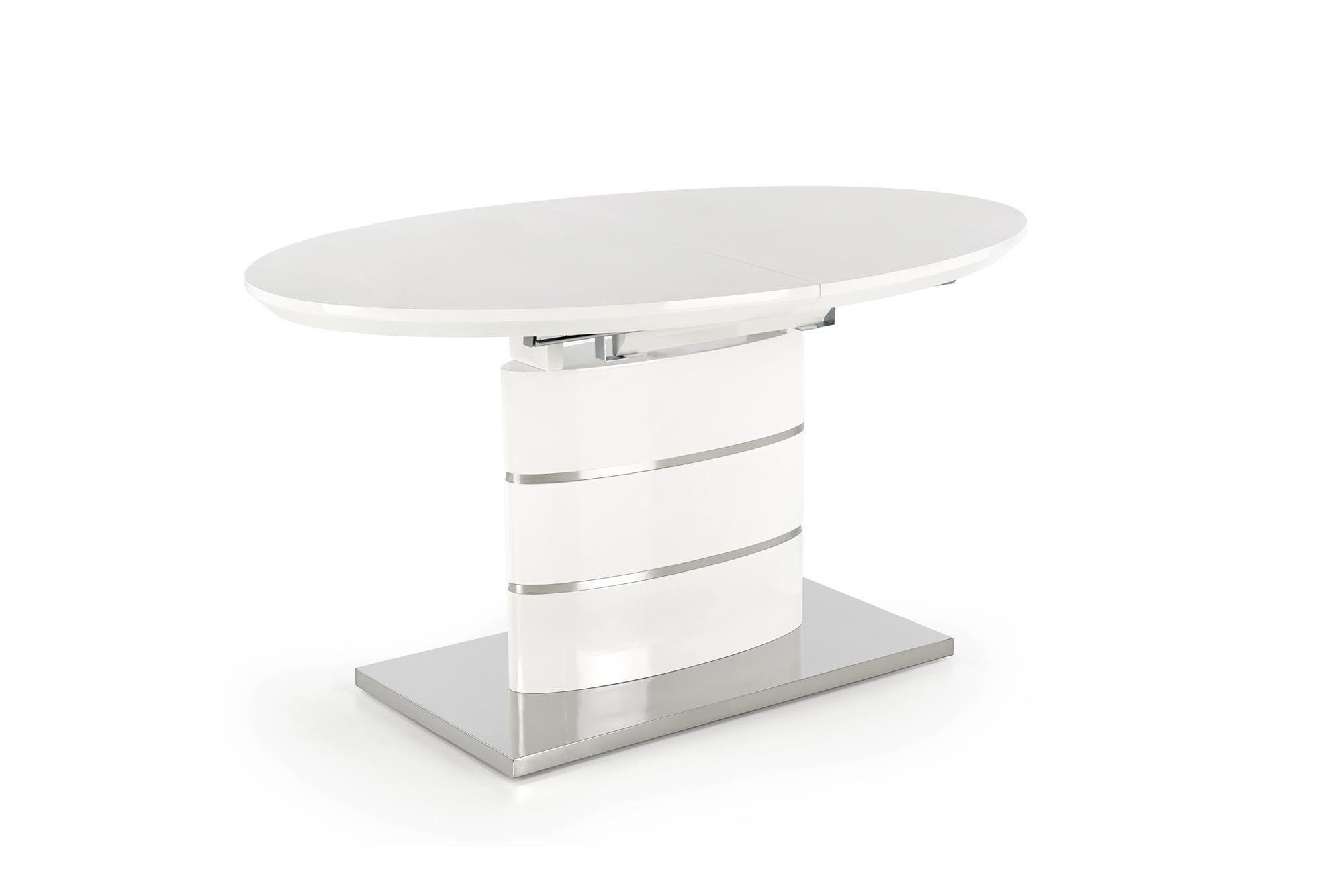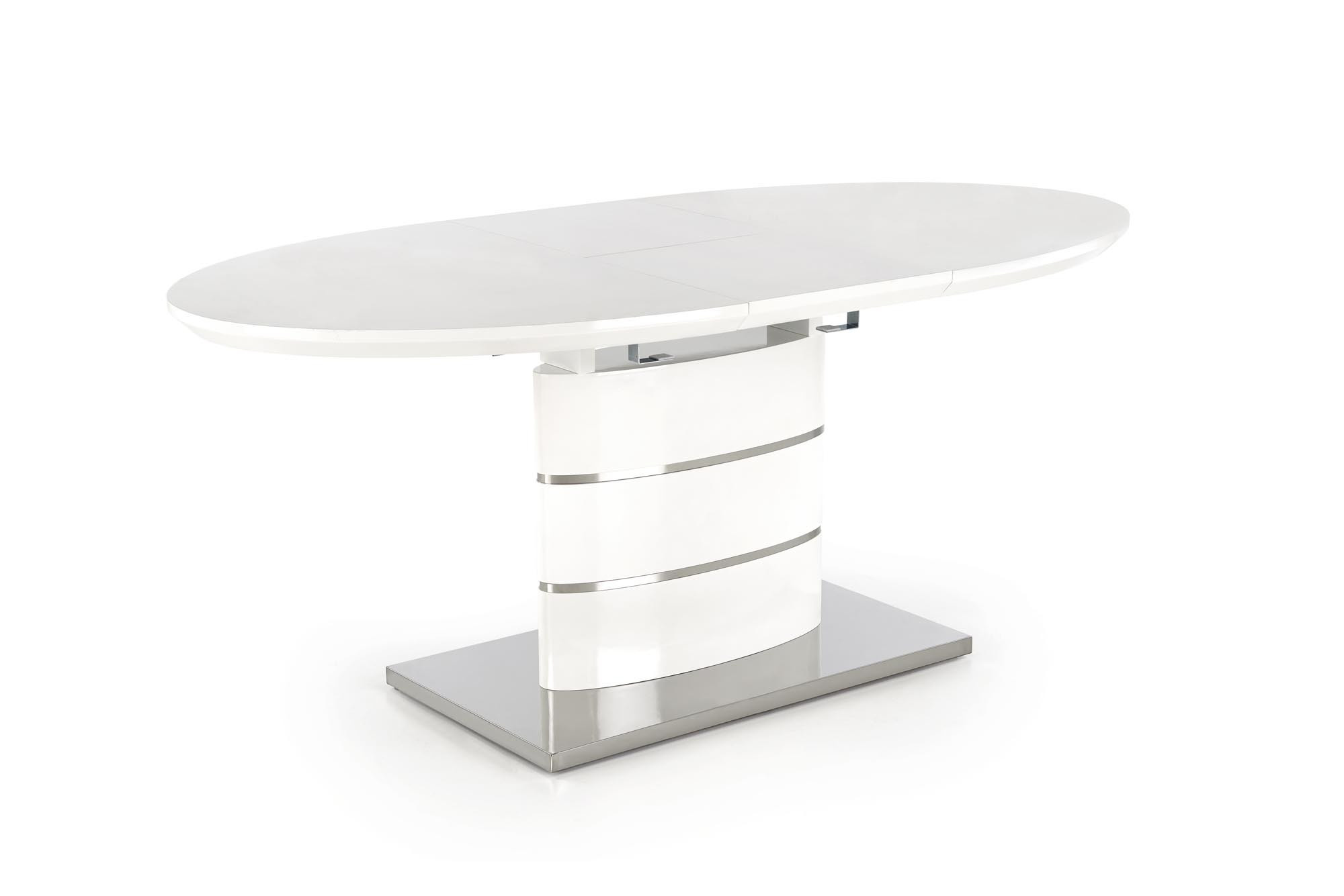 rozkládací stůl, rozměry: 140-180/90/76 cm, materiál: MDF lakovaná / nerezová ocel, barva: bílá