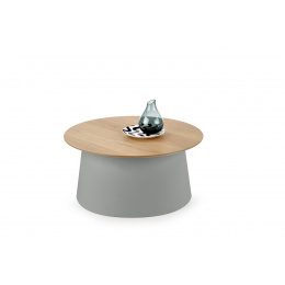 rozměry: fi 69/33 cm, materiál: MDF + přírodní dýha / polypropylen, barvy: přírodní / popelavě šedá