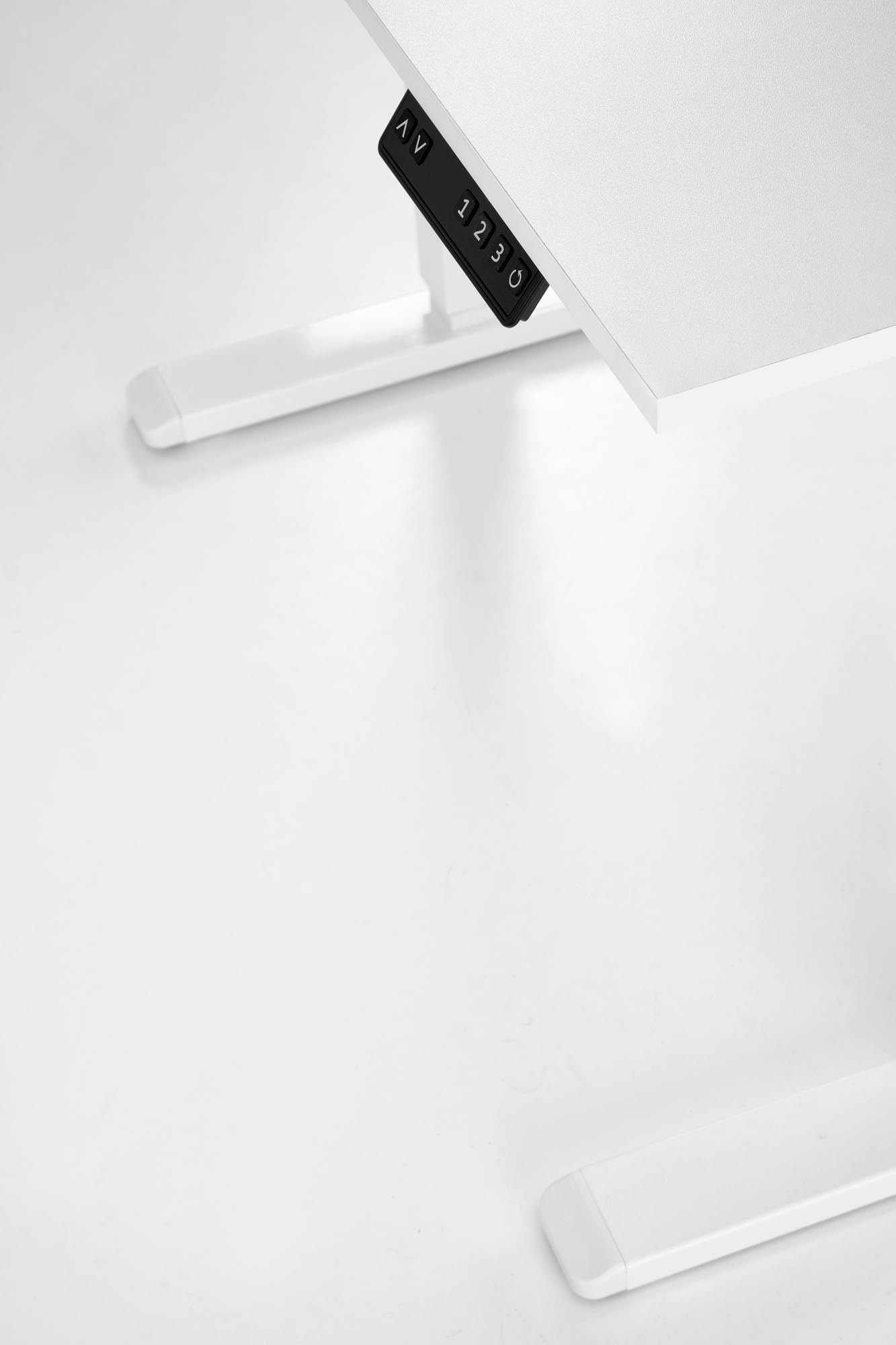 rozměry: 105/56/73-118 cm; výškově nastavitelný stůl, materiál: melaminová dýhovaná nábytková deska / práškově lakovaná ocel, barva: bílá