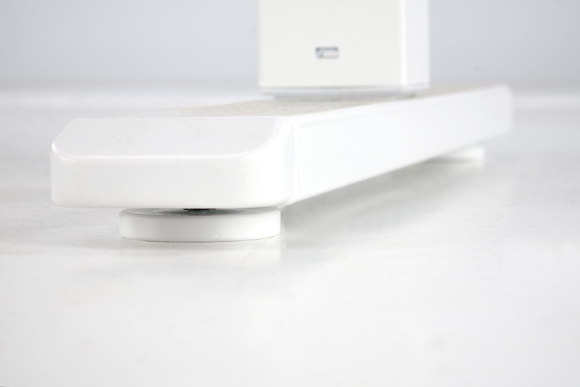rozměry: 105/56/73-118 cm; stůl s funkcí nastavení výšky, materiál: nábytková deska s melaminovou dýhou / ocel s práškovým nástřikem, barvy: dub artisan - bílá
