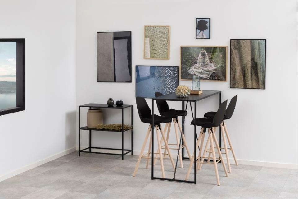 Barová stolička na dubových nohách Oslo je moderní a praktický nábytek pro stylový ostrůvek. Jeho design se jemně začlení do každého uspořádání, přinášejíc atmosféru komfortu a elegance. Sedák tvarovaný pro co největší spokojenost a pohodlí. Na sedadle byla umístěna polštář obalený vysoce kvalitní ekokůží v šedé černé. Jedná se o čalounický materiál s vysokou odolností, velmi pevný a snadno udržovatelný, takže je ideální pro každodenní použití. Dřevěné nohy v originálním, stabilitu zajišťujícím tvaru, byly zesíleny kovovými akcenty, nejen pro odolnost, ale také pro zdůraznění moderního stylu. Hmotnost: 6,5 kg. Rozměry kartonu: 46,5 cm x 25,5 cm x 75,5 cm Výška sedadla: 77 cm Šířka sedadla: 40 cm Hloubka sedadla: 37 cm