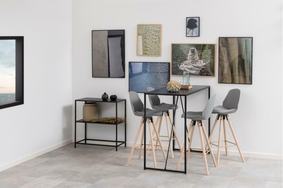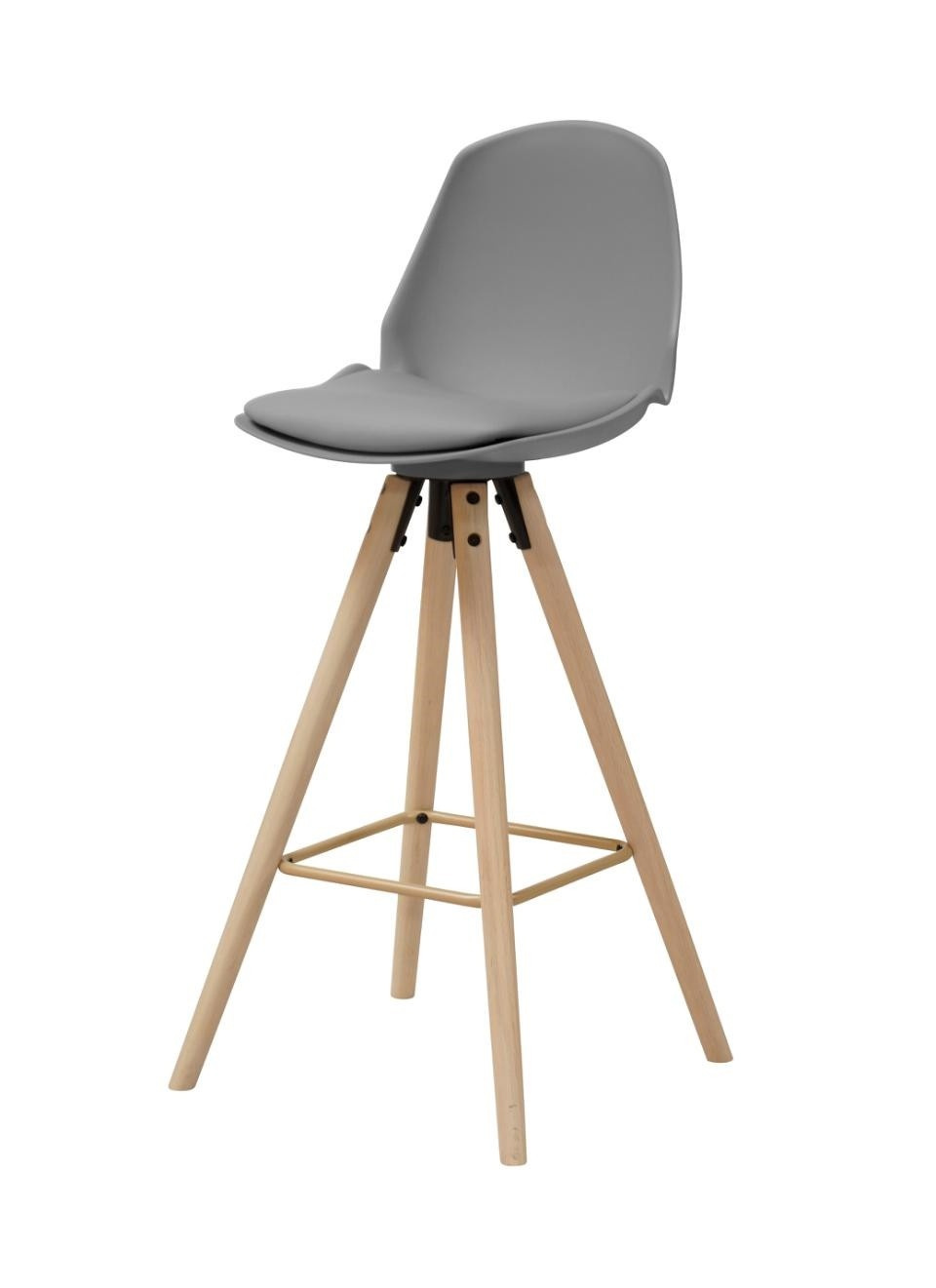 Barová stolička na dubových nohách Oslo je moderní a praktický nábytek pro stylový ostrůvek. Jeho design se jemně začlení do každého uspořádání, přinášejíc atmosféru komfortu a elegance. Sedák tvarovaný pro co největší spokojenost a pohodlí. Na sedadle byla umístěna polštář obalený vysoce kvalitní ekokůží v šedé barvě. Jedná se o čalounický materiál s vysokou odolností, velmi pevný a snadno udržovatelný, takže je ideální pro každodenní použití. Dřevěné nohy v originálním, stabilitu zajišťujícím tvaru, byly zesíleny kovovými akcenty, nejen pro odolnost, ale také pro zdůraznění moderního stylu. Hmotnost: 6,5 kg. Rozměry kartonu: 46,5 cm x 25,5 cm x 75,5 cm Výška sedadla: 77 cm Šířka sedadla: 40 cm Hloubka sedadla: 37 cm
