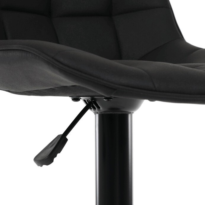 Barová židle AUB-V3066 BK3 kombinuje moderní design s praktickou funkčností. Sedák i opěradlo jsou potažené černou látkou v dekoru broušené kůže, která nabízí příjemný povrch a výrazné designové prošití dodává židli charakter. Výškově nastavitelný mechanismus umožňuje snadné přizpůsobení výšky sezení podle potřeby, zatímco otočná konstrukce zajišťuje pohodlný pohyb. Pevná kovová podnož v černém matném provedení je stabilní a doplněná o opěrku nohou pro zvýšení komfortu při delším sezení. Židle je vhodná do moderních interiérů, barů či kuchyňských koutů, kde oceníte kombinaci stylu a funkčnosti.