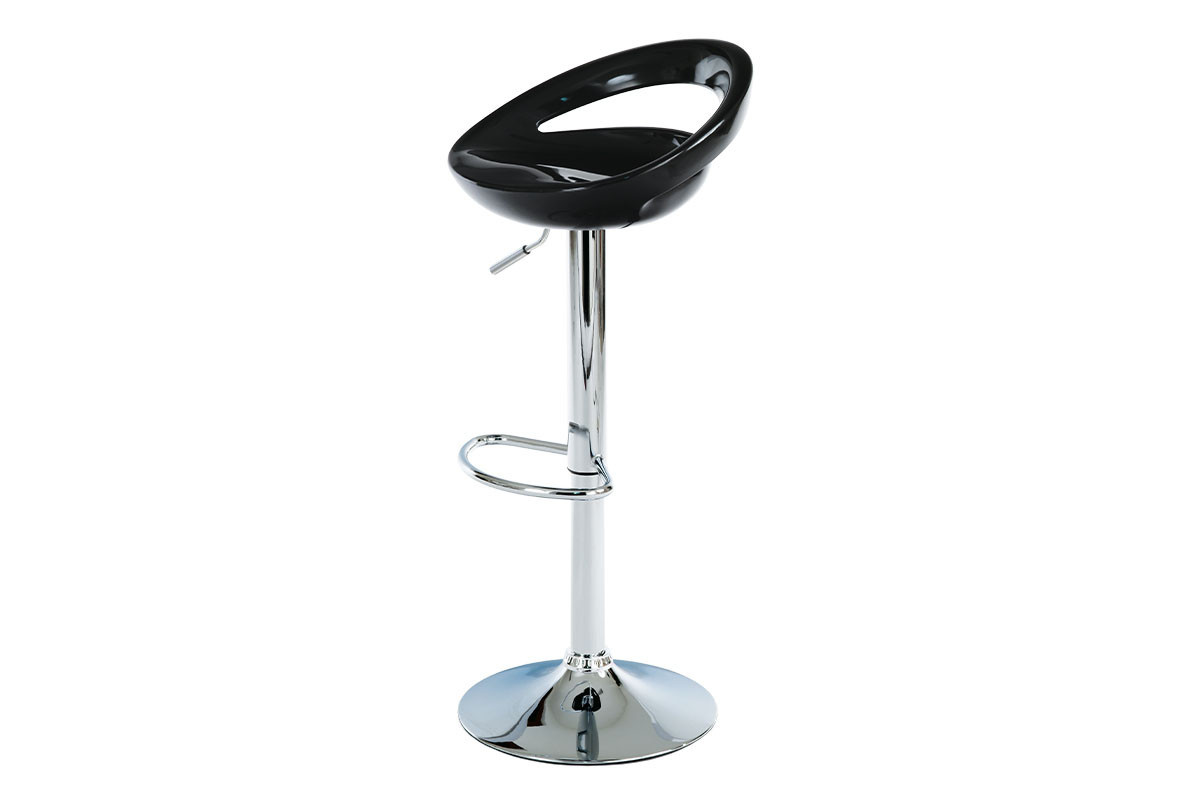 Barová židle, černý plast, chromová podnož, výškově nastavitelná