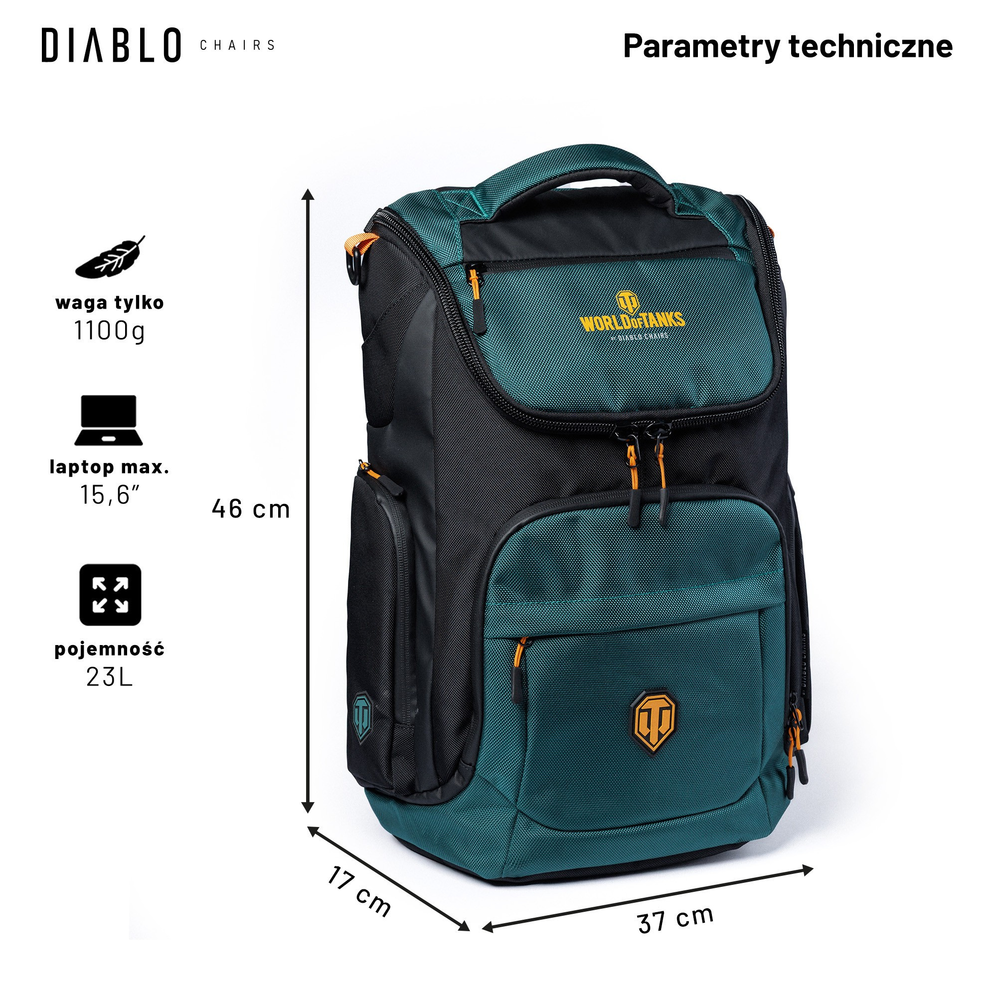 Vlastnosti batohu WoT: Moderní design v vojenském stylu Na licenci World of Tanks Prostorná hlavní komora a četné kapsy Polstrovaná kapsa na notebook do 15,6? z pěnovou výplní Odolný a voděodolný materiál Nastavitelné popruhy a ergonomický hrudní pás Tvarovaný a větraný zádový panel Batoh World of Tanks – nezbytnost pro pravého hráče Dokážeš si představit každodenní život bez batohu? Není šance! Pohodlný batoh World of Tanks je nepostradatelný doplněk na cestě do školy, na kroužky nebo do práce, ale také na cestování. Pojme potřebné věci a postará se o vaše pohodlí v každé situaci. Batoh WoT je skvělá volba, jak se odlišit od davu a zdůraznit svou herní vášeň.Vojenský styl a herní identita Spolupráce Diablo Chairs a World of Tanks musela skončit batohem, od kterého neodtrhneš zrak. Moderní design s drápem se skvěle snoubí s vojenským stylem WoT. Každý fanoušek hry z dálky rozpozná tuto charakteristickou zeleno-oranžovou barevnost. Ukaž světu, co ti hraje v duši!Prostorný a chytře navržený V batohu WoT najdeš místo pro všechny nezbytné věci. Prostorná hlavní komora pojme knihy, oblečení a doplňky, a vnitřní organizér s přihrádkami uspořádá pera, klíče nebo powerbanku. Nic nelétá po batohu a snadno najdete potřebný předmět. Vnější kapsa zaručuje rychlý přístup k peněžence, telefonu nebo lístkům, a boční přihrádky pojmou láhev, termosku a deštník. Všechno máš po ruce a bez otravného prohledávání celého batohu. Speciální kapsa na notebook Co by byl herní batoh bez možnosti bezpečně do něj zabalit notebook? Oddělená kapsa vyplněná pěnou je ideální prostor pro cennou elektroniku. Můžeš tam schovat notebook (do 15,6?) a nemusíš se obávat poškození. Potřebné vybavení si můžeš vzít s sebou kamkoliv!Vždy na stráži ergonomie Batoh World of Tanks můžete nosit několik hodin bez bolesti a stěžování si. Stará se o to celá sada ergonomických řešení. Regulovatelné popruhy se přizpůsobí vaší postavě a zajišťují pohodlí při nošení, zatímco zesílené držadlo umožňuje držet batoh v ruce. Stabilitu během pohybu zlepšuje hrudní pás. Díky tomuto batohu WoT si ho můžeš bez obav vzít na delší túru nebo cyklistickou projížďku. Profilovaný a větraný zádový panel zlepšuje cirkulaci vzduchu a eliminuje nadměrné pocení během používání. Odolný a voděodolný batoh pro hráče Vojenský vzhled batohu jde ruku v ruce s pevností provedení. Voděodolný materiál chrání obsah před zalitím a navíc jsou přední kapsy vybaveny zipy, které zabraňují prosakování. Batoh se tedy osvědčí i v náročných podmínkách. Materiál je také mimořádně pevný a neroztrhne se v nečekaných situacích. Vezmi si ho s sebou kamkoli. Univerzální batoh WoT je tvůj nepostradatelný společník v každodenním životě. Beri ho s sebou do školy, na hodiny, LAN party nebo dokonce na několikadenní výlet mimo město. Promyšlené rozměry batohu umožňují cestování s ním letadlem jako příruční zavazadlo (vejde se do limitů LOT, Lufthansa, KLM, Norwegian). To je batoh, který tě nikdy nezklame!