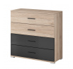 BAUNTI BA 45 (BARI BA 45) - KOMODA 4S - 4 šuplíky- dub san remo pískový / černý lesk (IZ) (K150-Z)