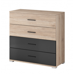 BAUNTI BA 45 (BARI BA 45) - KOMODA 4S - 4 šuplíky- dub san remo pískový / černý lesk (IZ) (K150-Z)