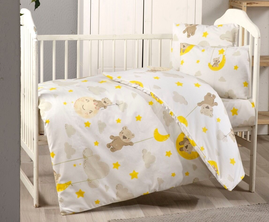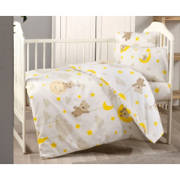 Bavlněné dětské povlečení do malé postýlky 90x135, 45x60 cm medvídek v oblacích