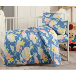Bavlněné dětské povlečení do malé postýlky 90x135, 45x60 cm obloha modrá nitěný knoflík