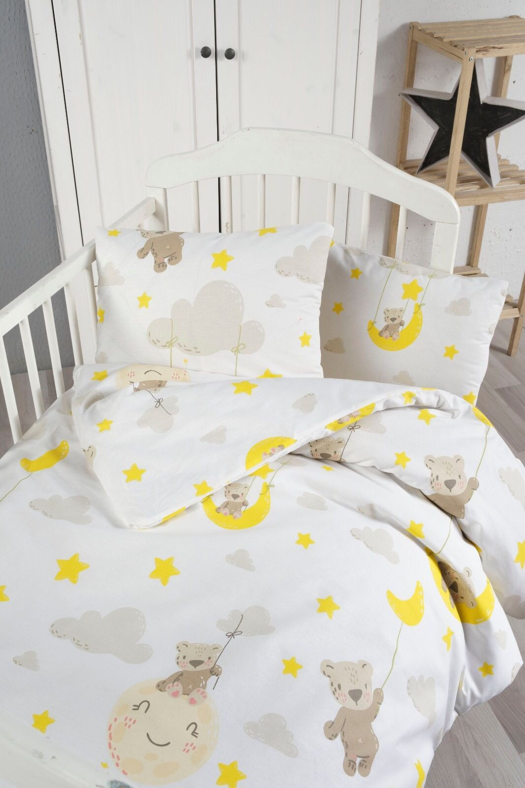 Bavlněný povlak na polštář 40x40 cm s dětským motivem medvídek v oblacích