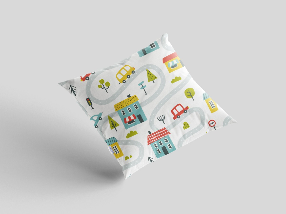 Bavlněný povlak na polštář 40x40 cm s dětským motivem městečko