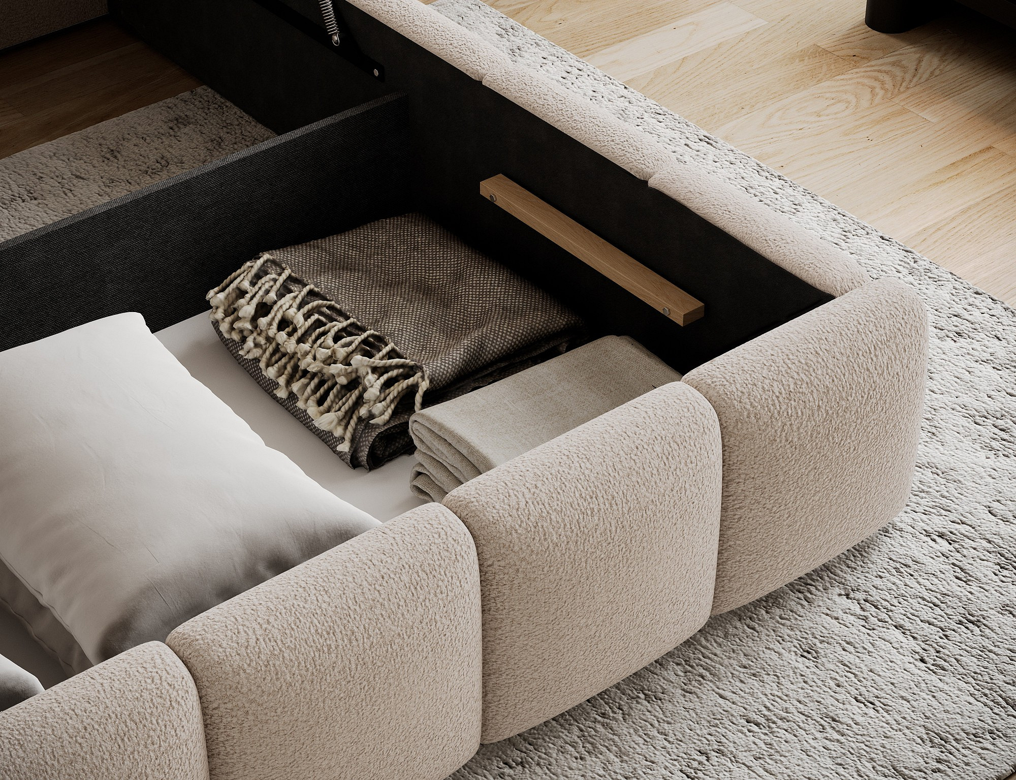 Jednou z hlavních výhod této postele je úložný prostor, který je ideální pro uskladnění ložního prádla, sezónního oblečení nebo dalších potřebných věcí. Tento prostor je snadno přístupný a pomáhá udržovat vaši ložnici čistou a uspořádanou.