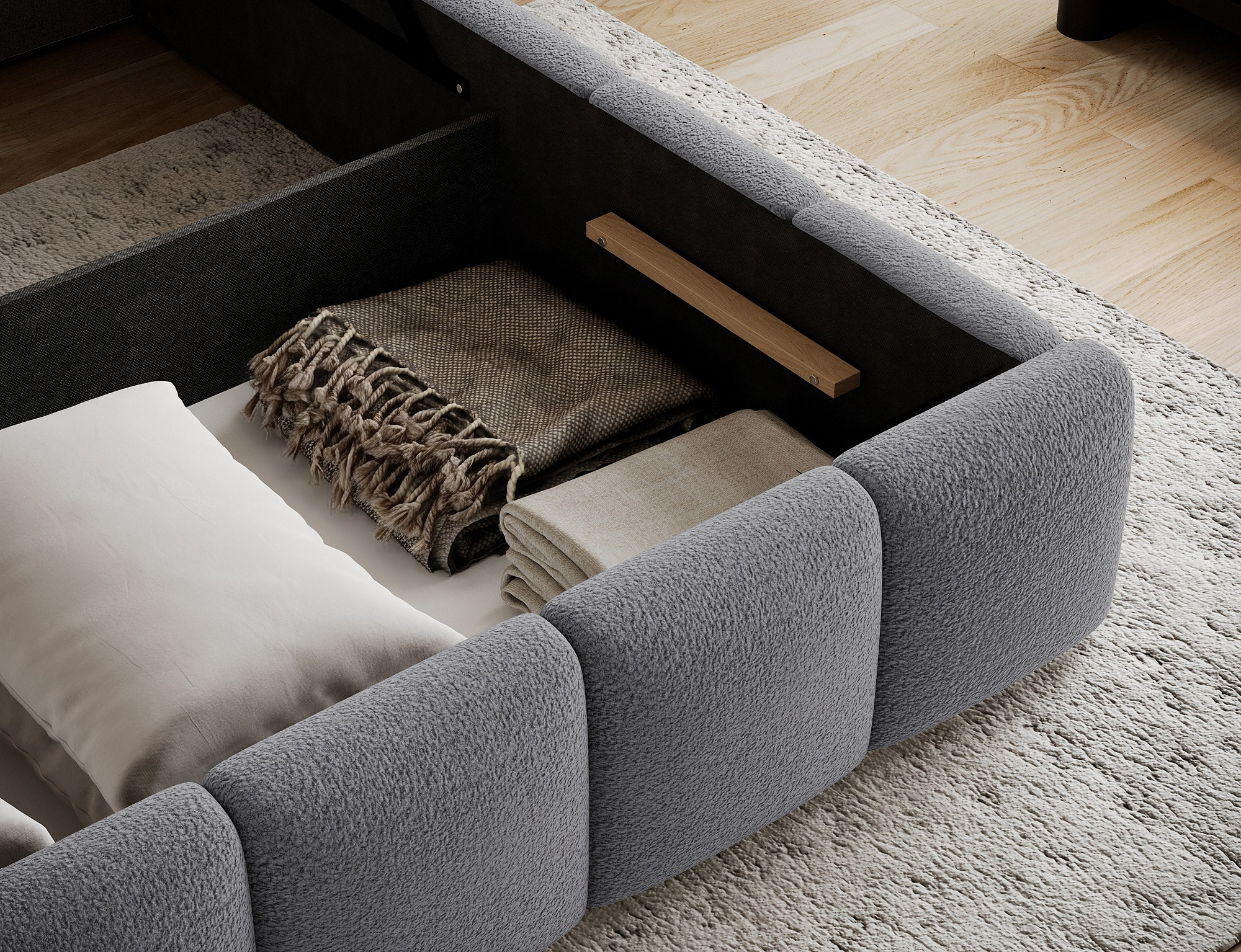 Jednou z hlavních výhod této postele je úložný prostor, který je ideální pro uskladnění ložního prádla, sezónního oblečení nebo dalších potřebných věcí. Tento prostor je snadno přístupný a pomáhá udržovat vaši ložnici čistou a uspořádanou.