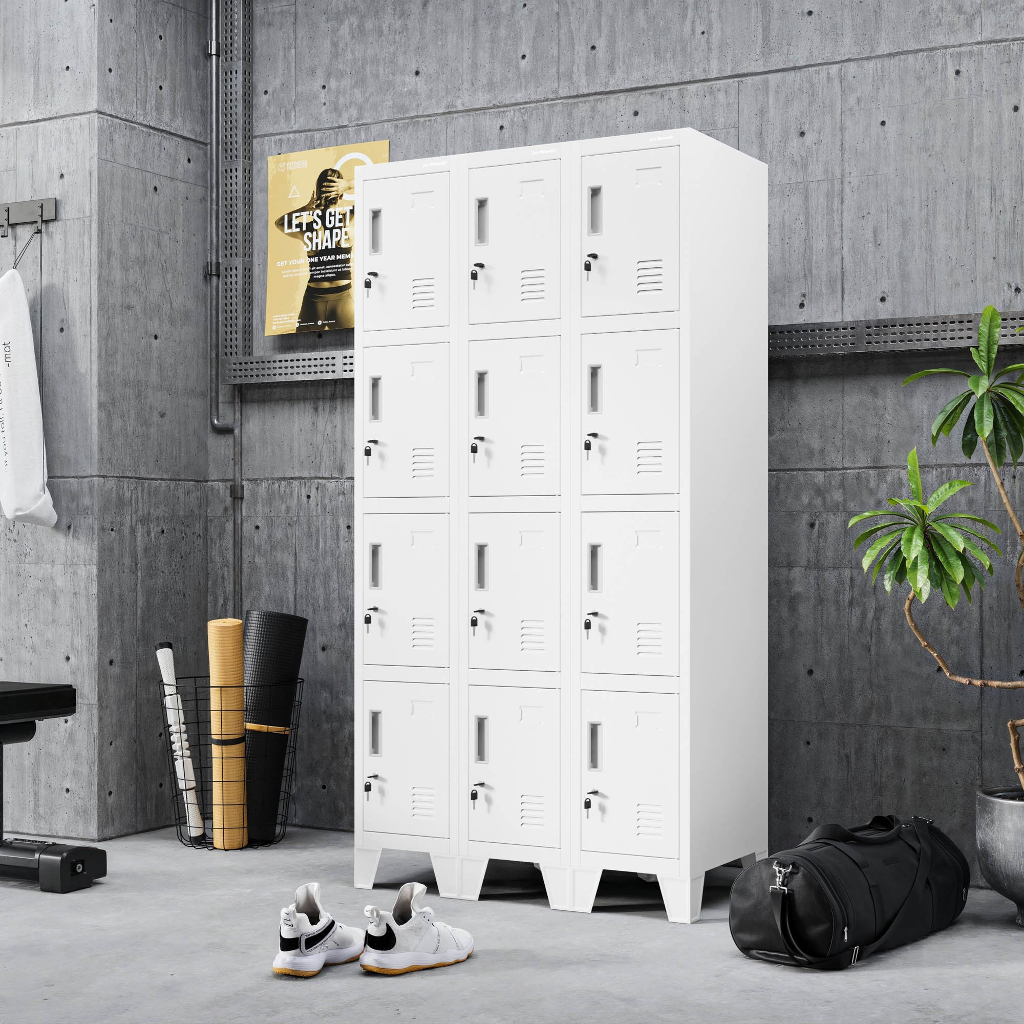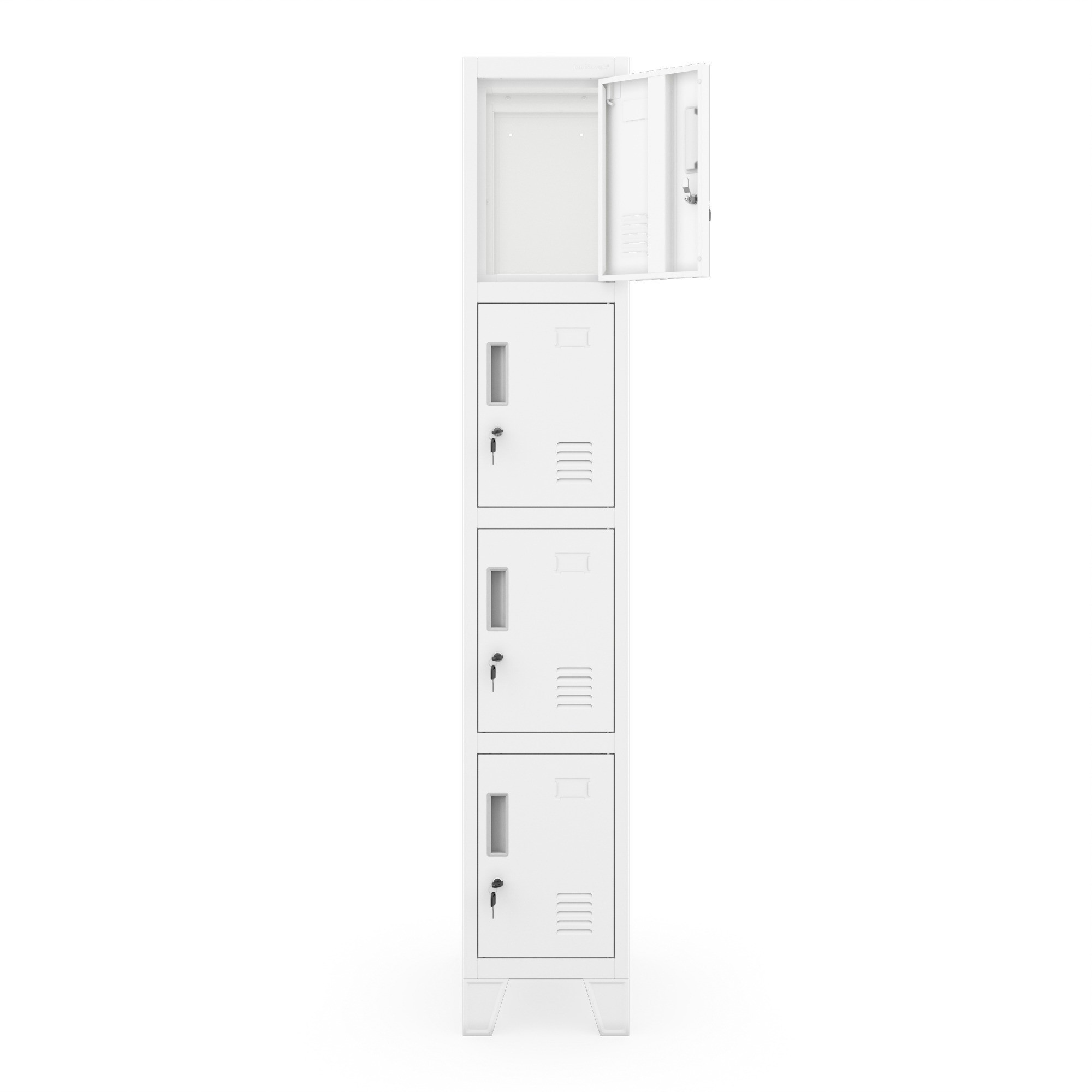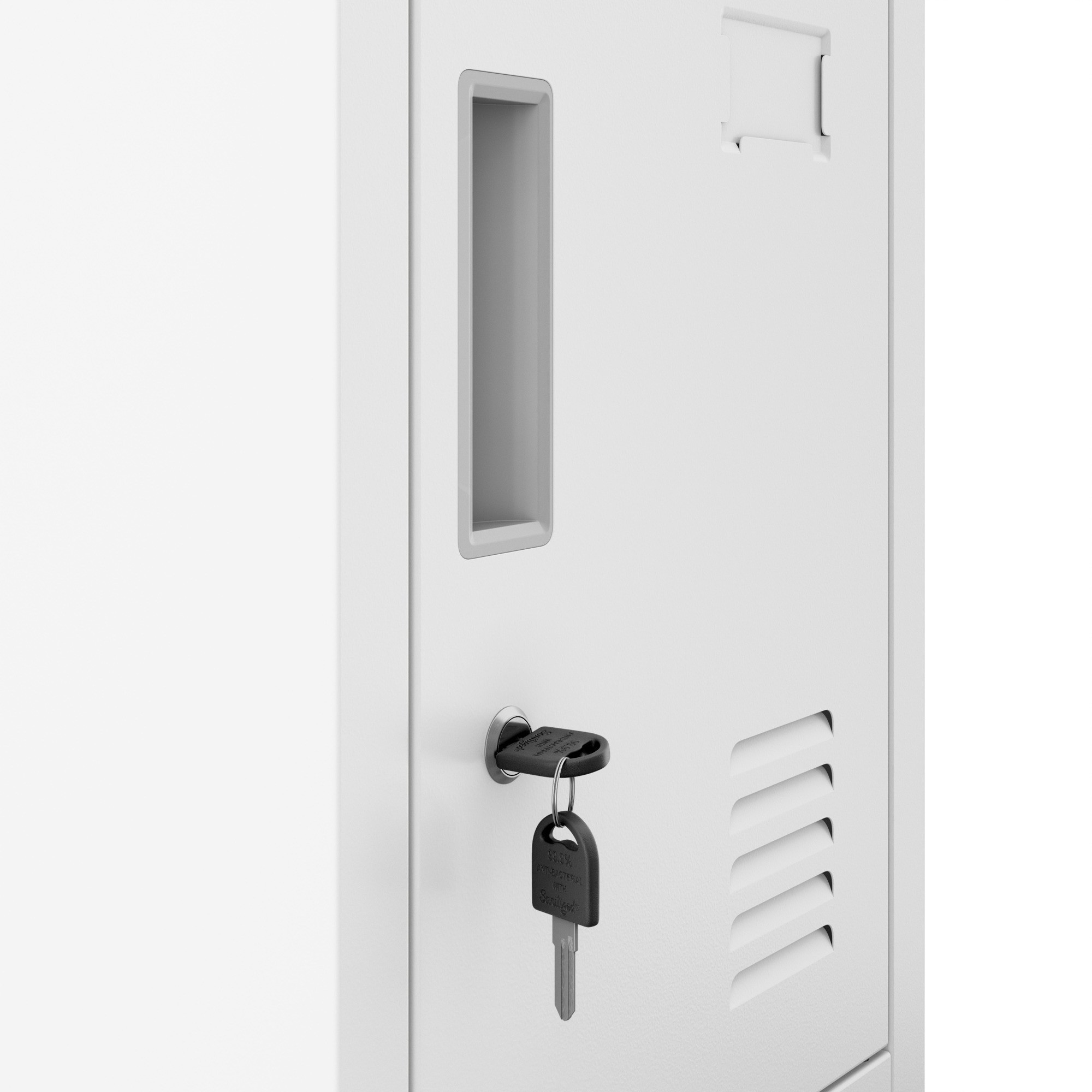 - Bezpečnost: Každá skříňka je vybavena kvalitním zámkem, který chrání osobní věci před neoprávněným přístupem.